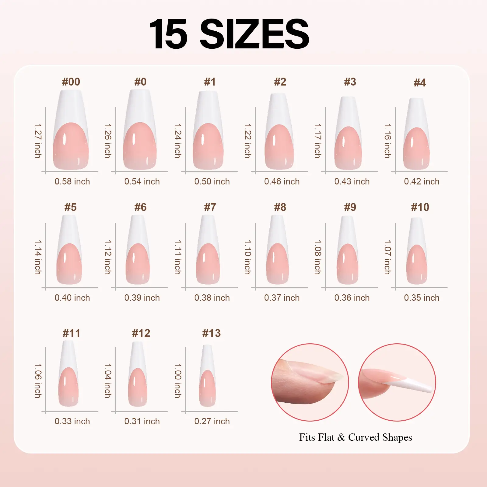 Very nice nails I will be purchasing more nothing better then French nails and I love the length
