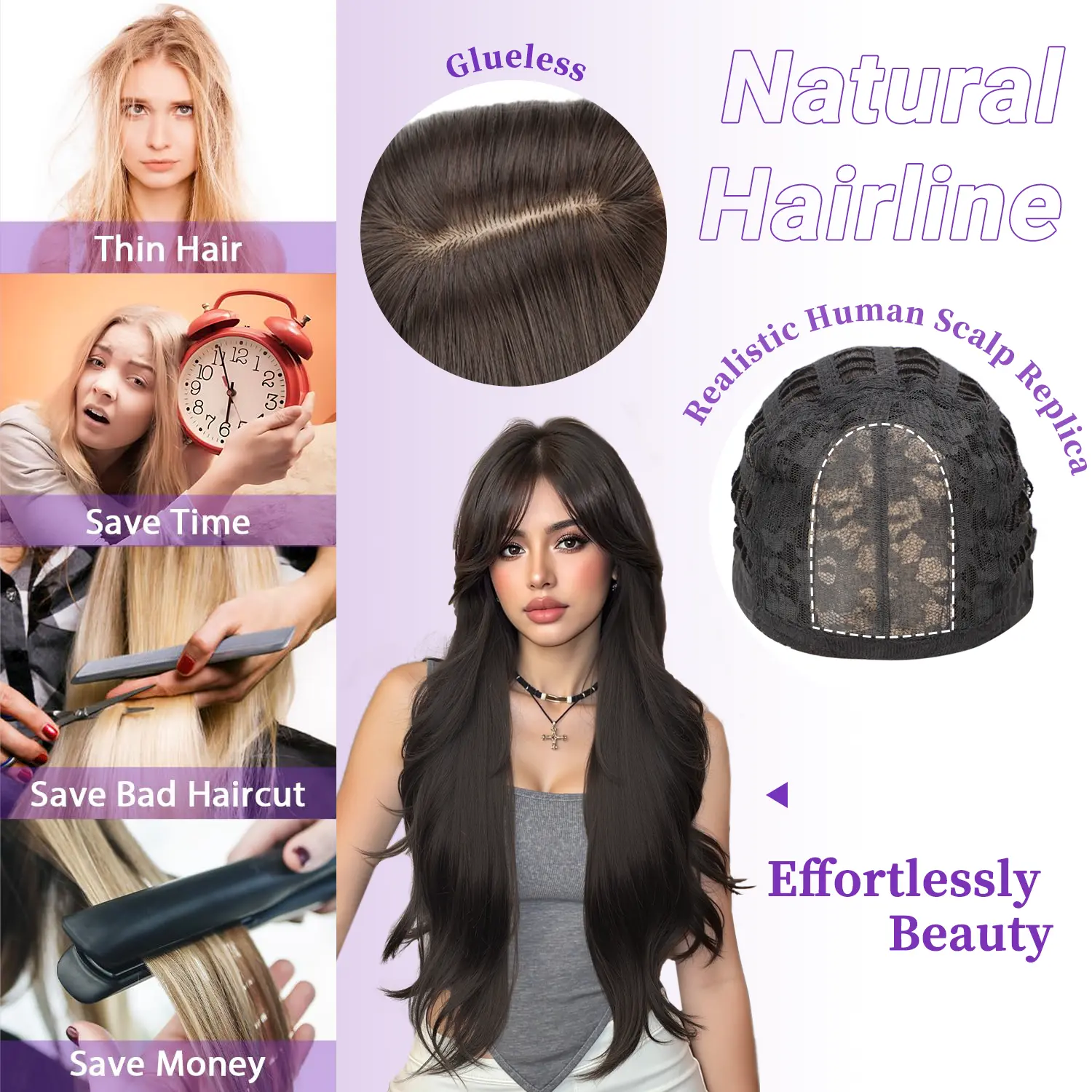 ¡Realistic Scalp Design: This wig features a 2x4 realistic scalp, providing a natural look. The free parting design allows for versatile styling. Perfect for those seeking a realistic appearance with ease of styling. đ