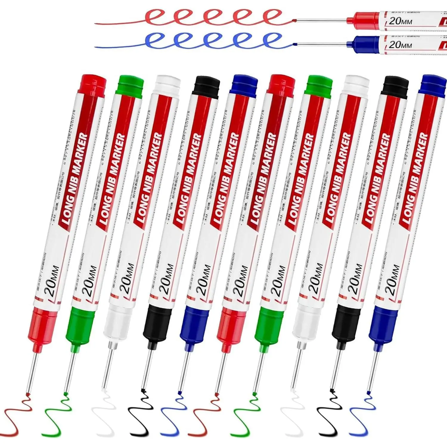 Long Head Deep Hole Marker is quick-drying, smudge-proof, and waterproof.It can mark most dry and dust-free surfaces like aluminum, metal, concrete, glass, wood, plastic, etc.And it's convenient to use.