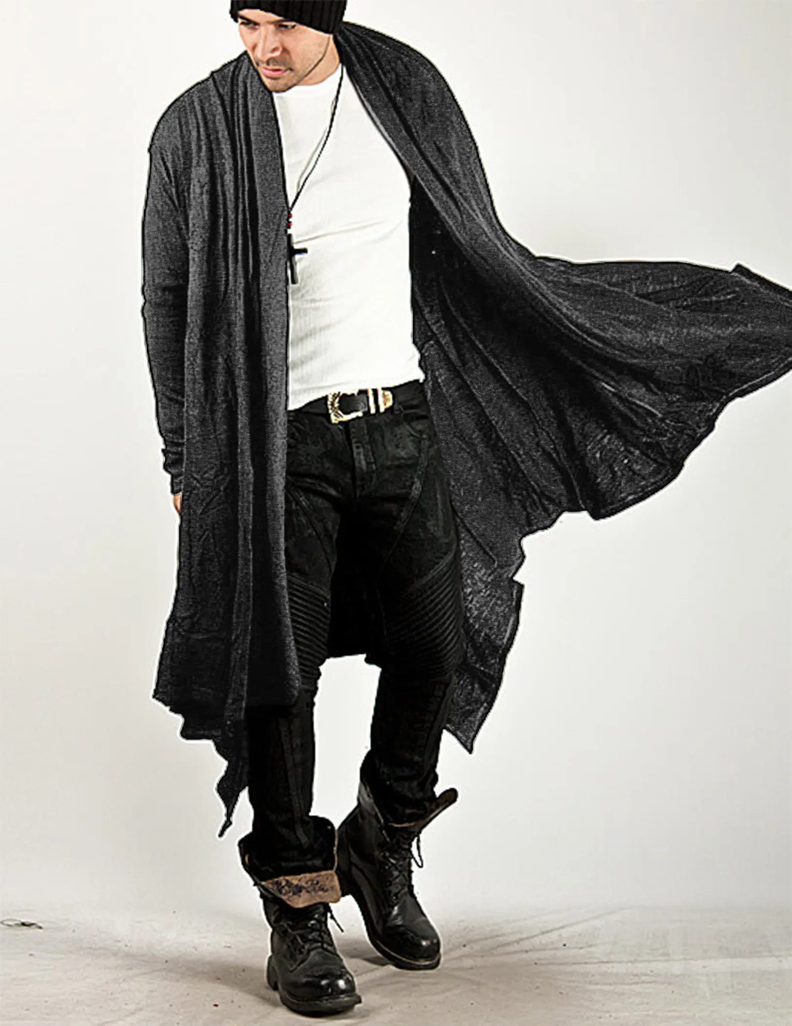 ·If you find words like Avant-garde and innovation quite appealing then this long cardigan equipped with a stylish hood and diabolic drape is a perfect deal for you.