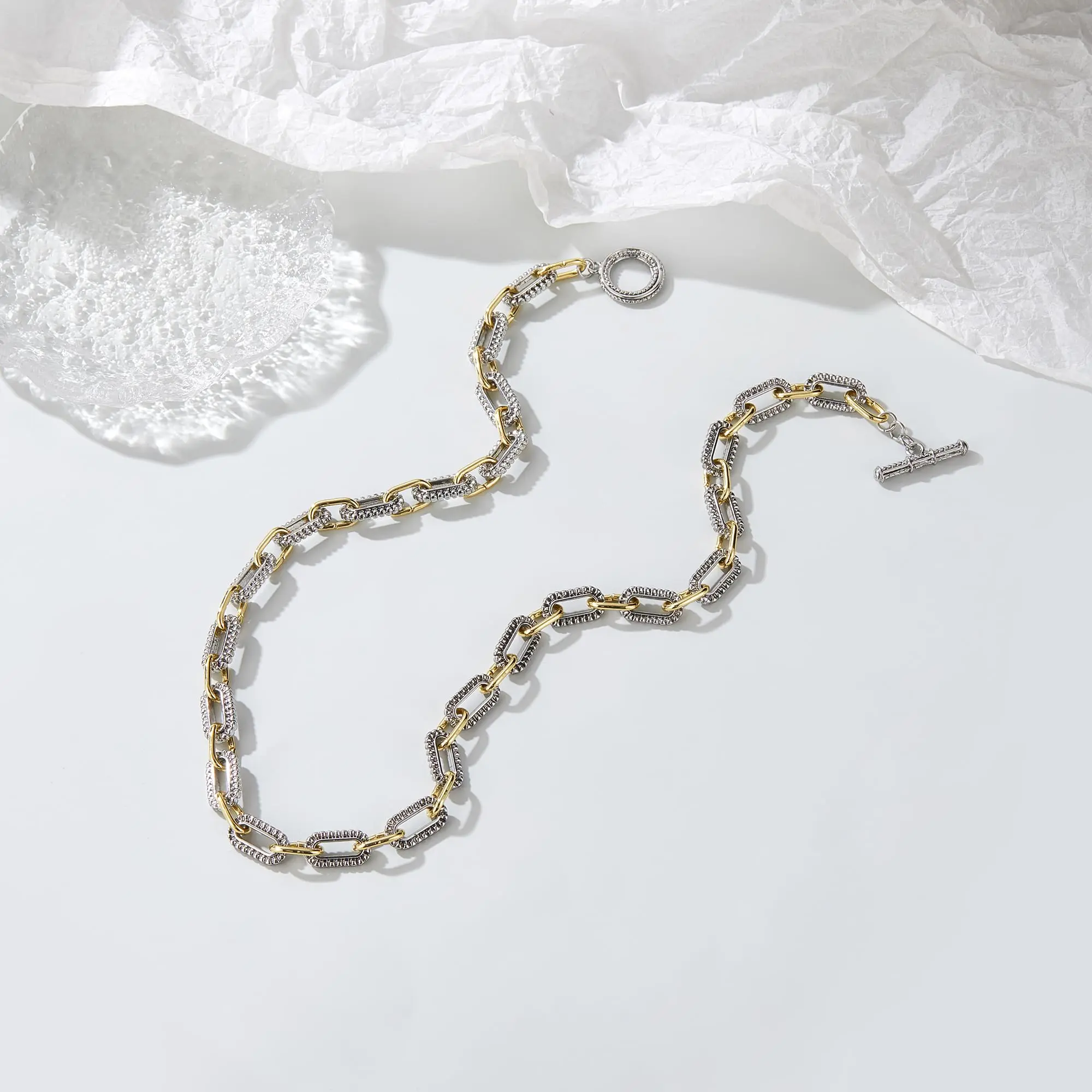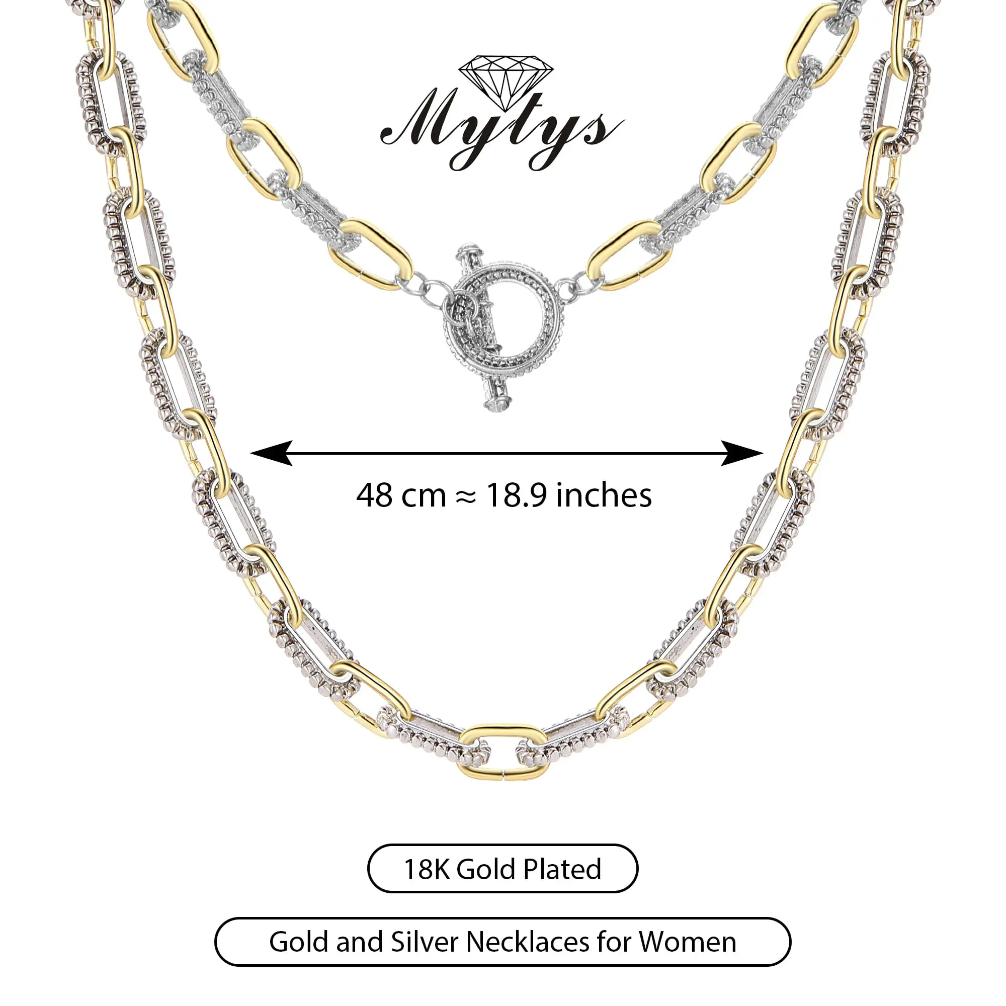 MYTYS Trendy Two Tone Twist Wire Long Link Chain Necklace for Women Men Jewelry Gifts 48cm Bling Stylish Accessory