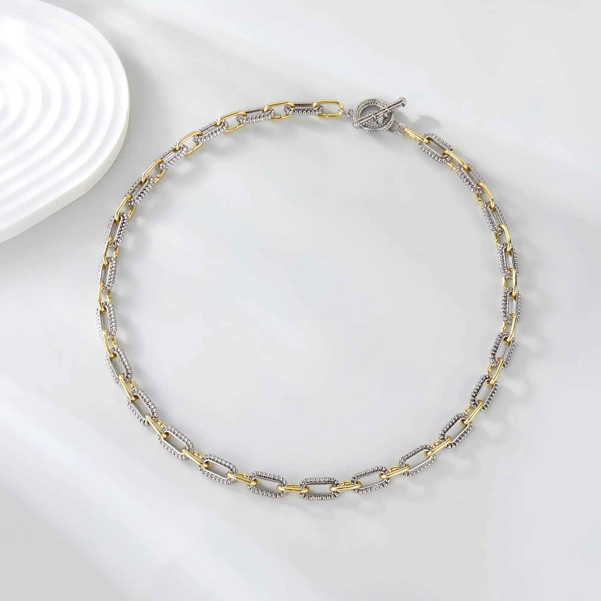 ·Material: The necklace is made with a combination of two tones, creating a unique and eye-catching look. 🌈