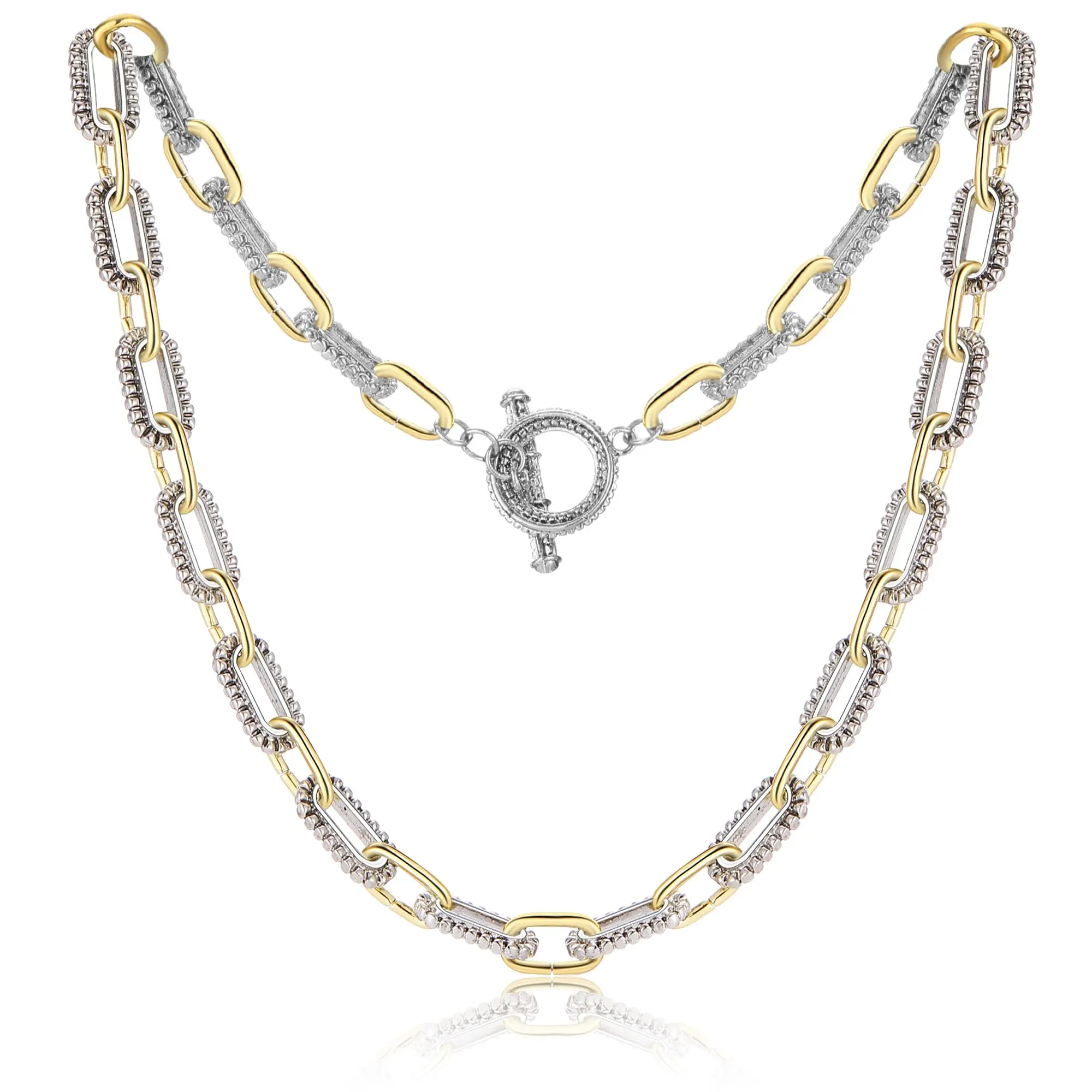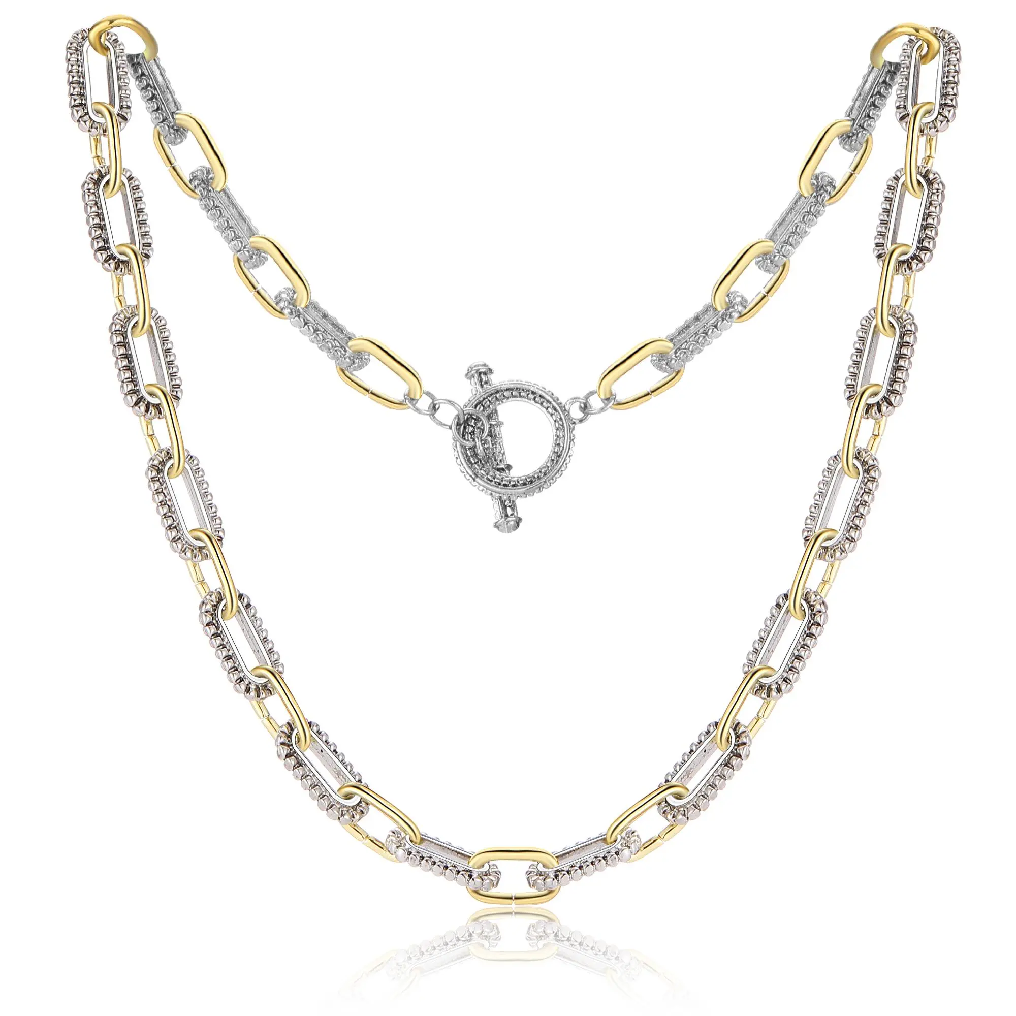 ·Design: This necklace features a two-tone twist wire long link chain. Perfect for women and men, it adds a stylish touch to any outfit. 🌟