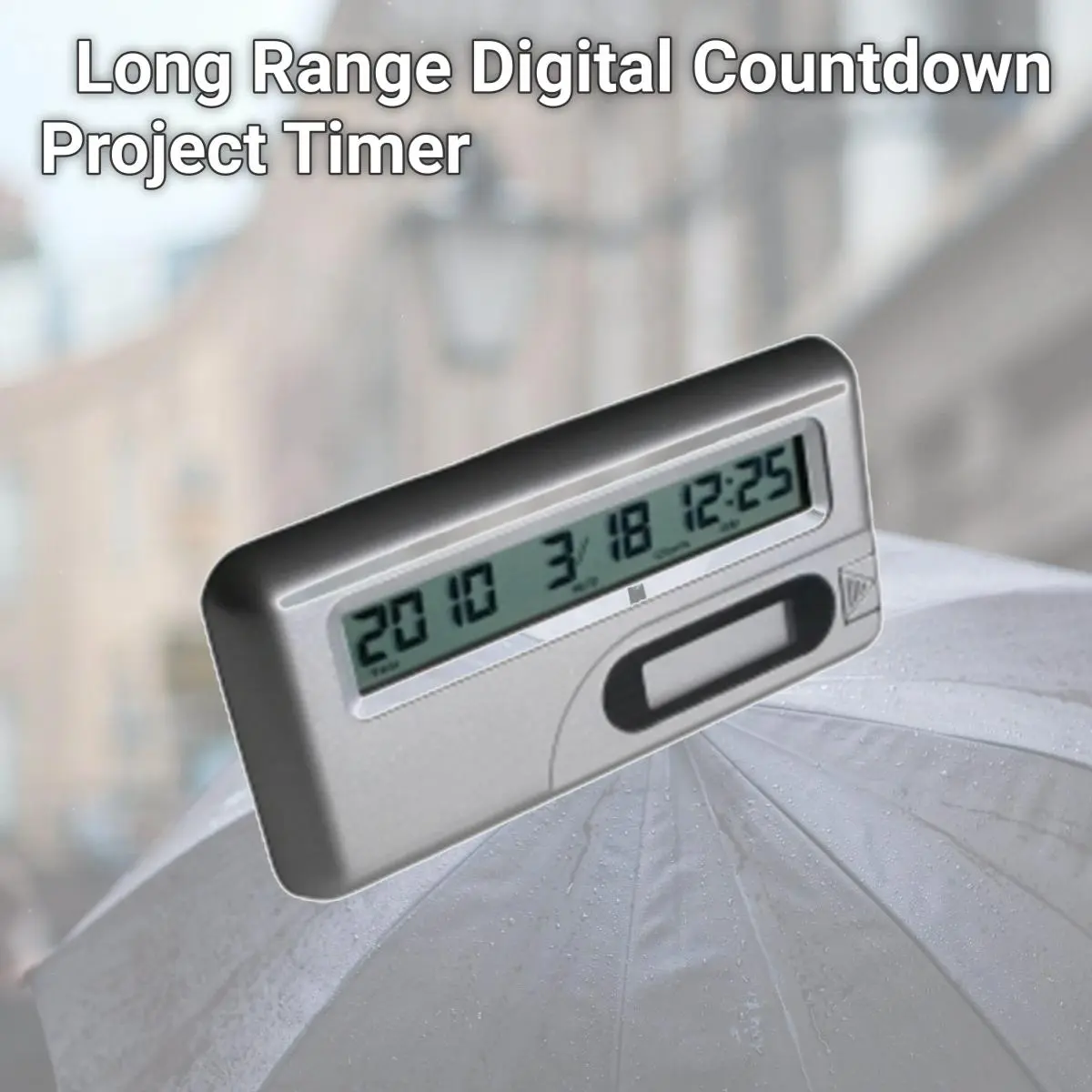 Features Long Range Digital Countdown Project Timer| Set a target day for completion of a project up to 8 years in the future and this unique timer counts down to your deadline in days, hours, minutes, seconds and 1/100 seconds on a 12 digit LCD. View either the target date or the actual count down. You can insert the name of your project into a special window which can be seen on the timer face. Also has standard clock, timer, and stopwatch modes. The timer can count up to 2,999 days, 23 hours, 59 minutes, and 59 seconds, as long as the battery power is sustained. A tripod back enables the project timer to stand on a bench top. Comes with 1 AAA battery. Dimension - 5 x 0.8 x 2.8 in.. Item Weight - 0.16 lbs..