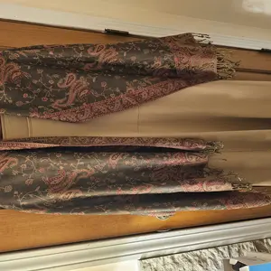 Very beautiful long scarf. Not as wide as I had thought but it is still beautiful and works great at keeping me warm.