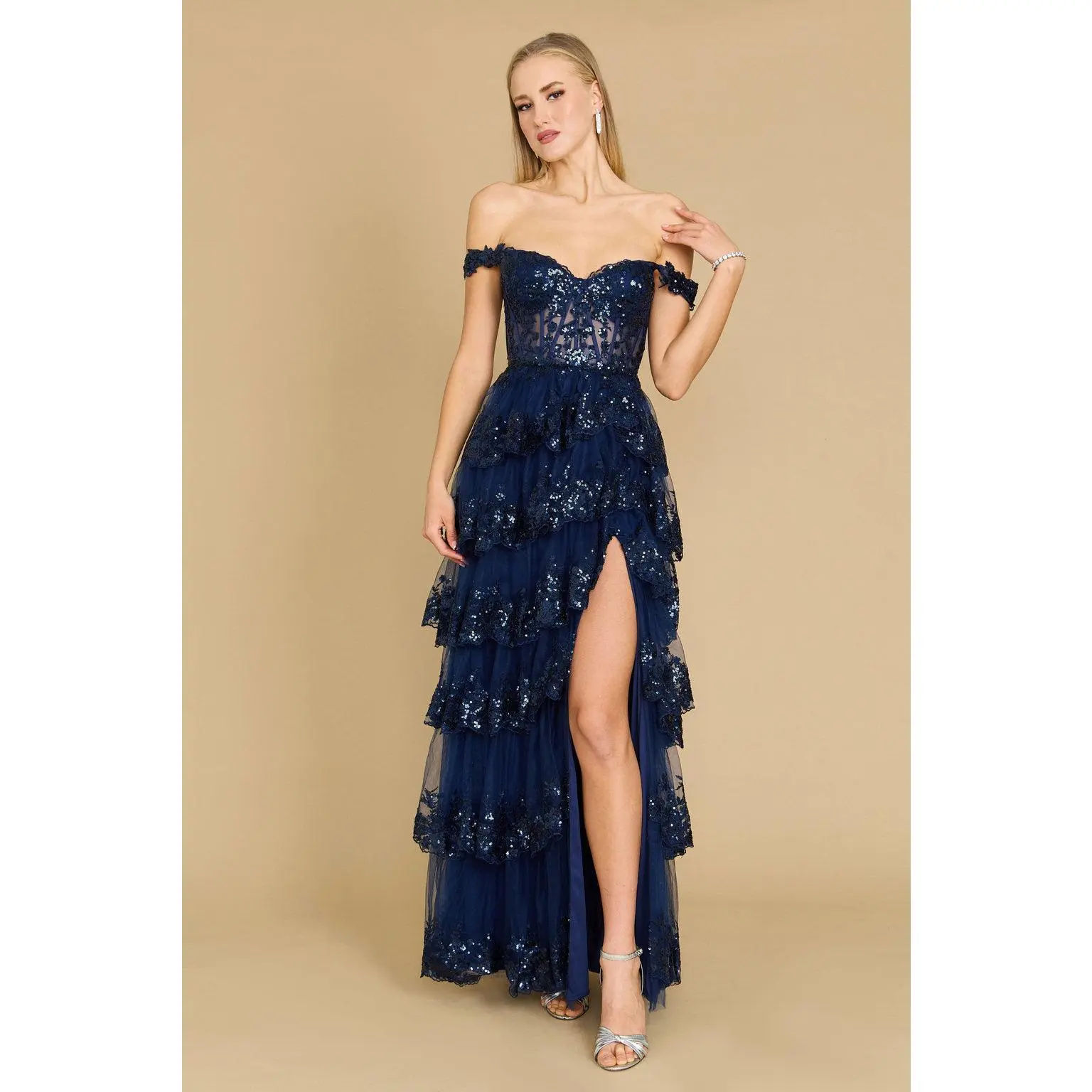 Radiate elegance in Dylan David's Long Sequin Sheer Corset Prom Dress, a captivating blend of glamour and sophistication. This enchanting gown features intricate sequin detailing and a sheer corset bodice, creating a stunning silhouette that accentuates your curves. With its long length and graceful design, it's perfect for prom or any formal occasion. Elevate your style and make a statement with this exquisite creation from The Dress Outlet. Shop now and dazzle on your unforgettable night.