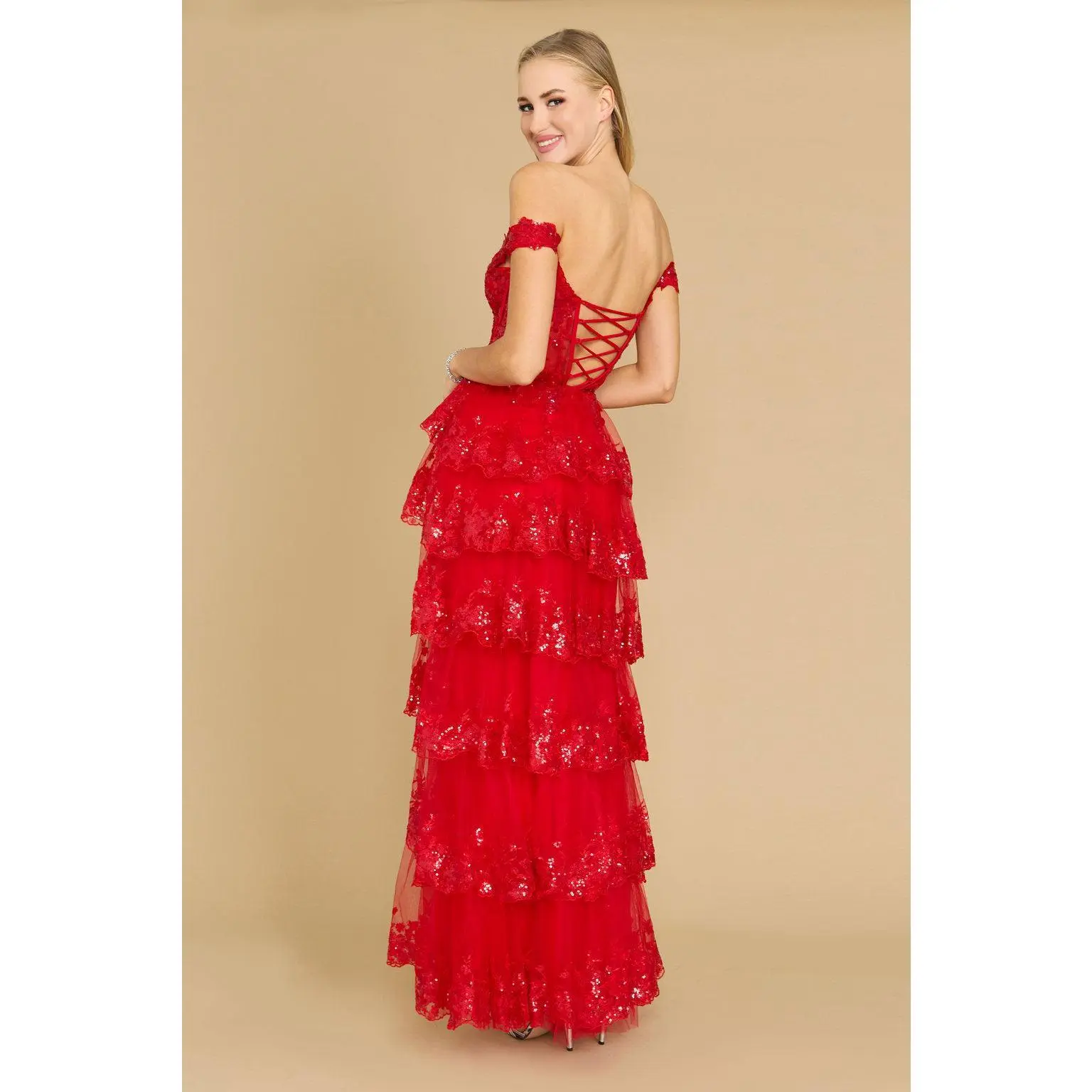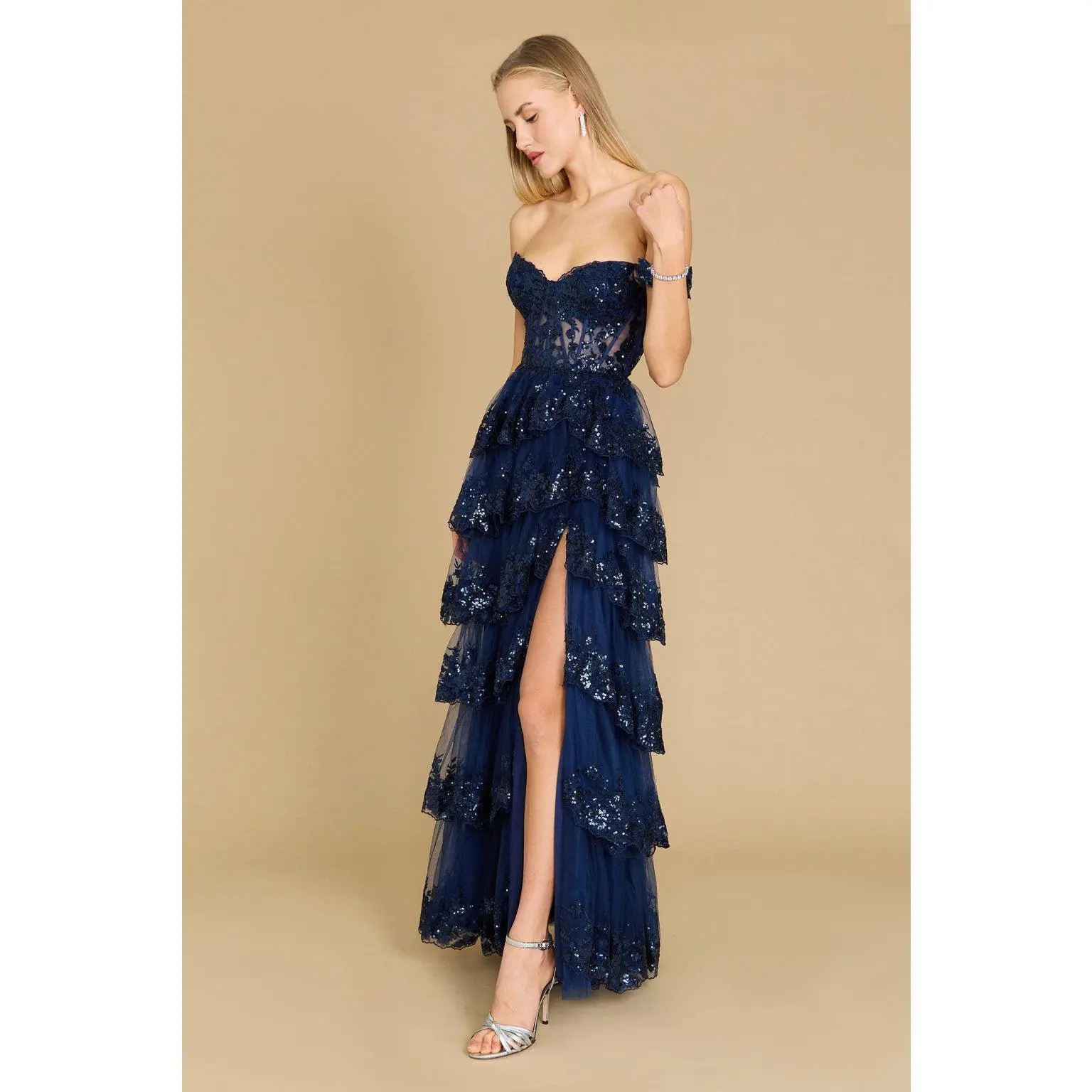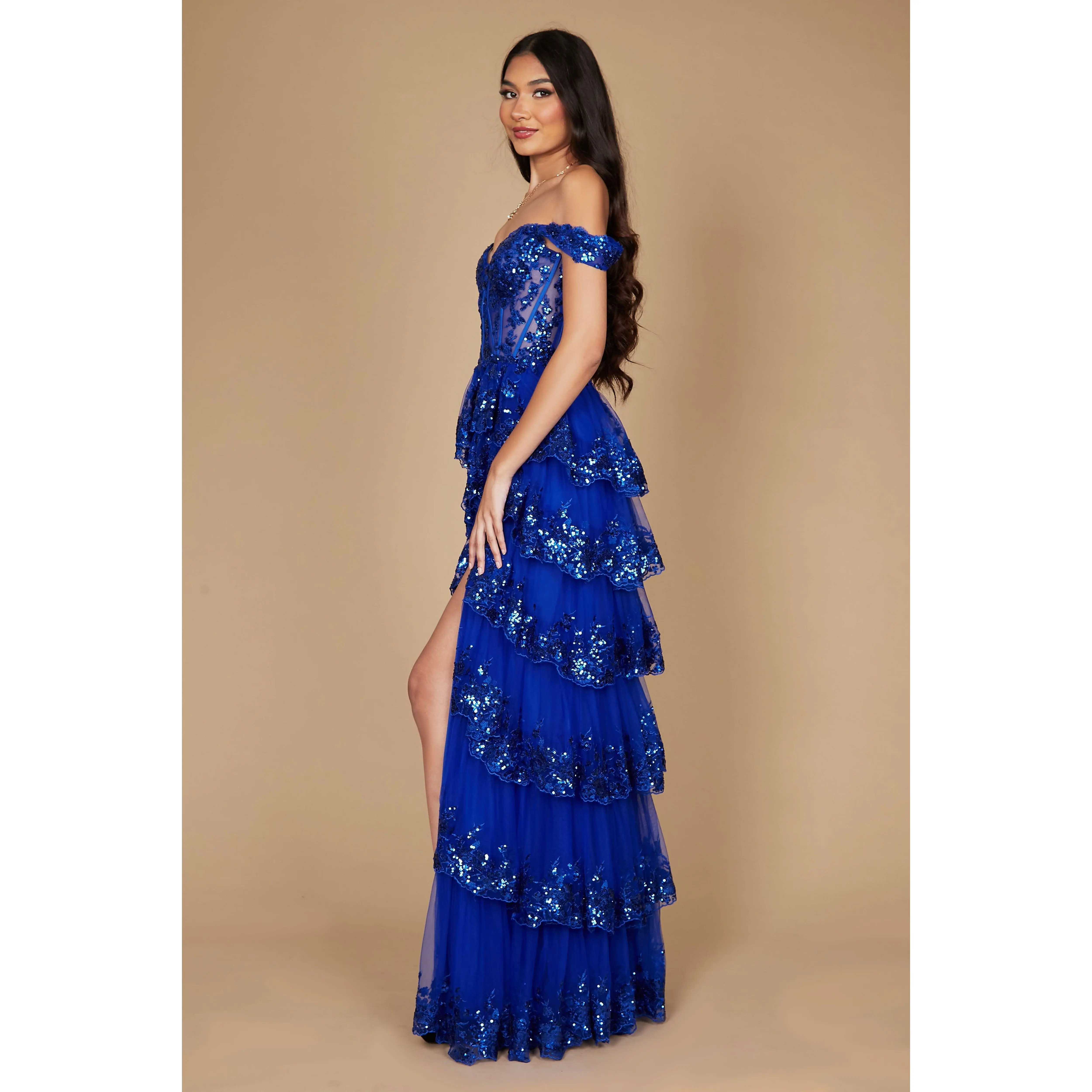 Dylan & Davids DD1343 Long Sequin Sheer Corset Prom Dress