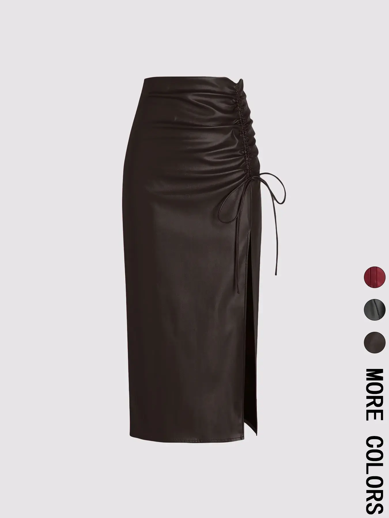 This skirt feels like butter. Slides on and very sexy. The ruched side is adjustable and looks beautiful.