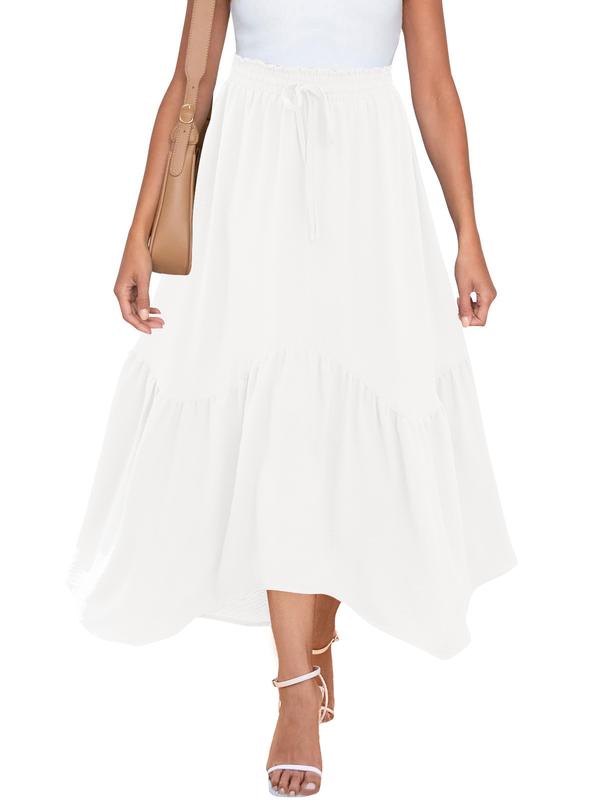 ·Asymmetric Design: Elastic waist skirts is easy to wear and put on. The 2 side pockets offer functionality, while the hem of the skirt is arc, making the skirt more flowy.long skirt comes in an A-line fit, with tiers through the skirt featuring slant seams with slight shirring