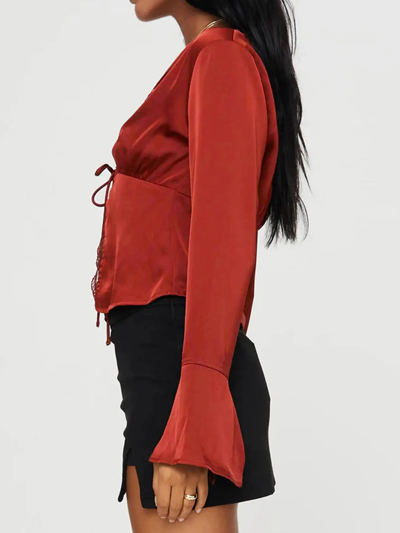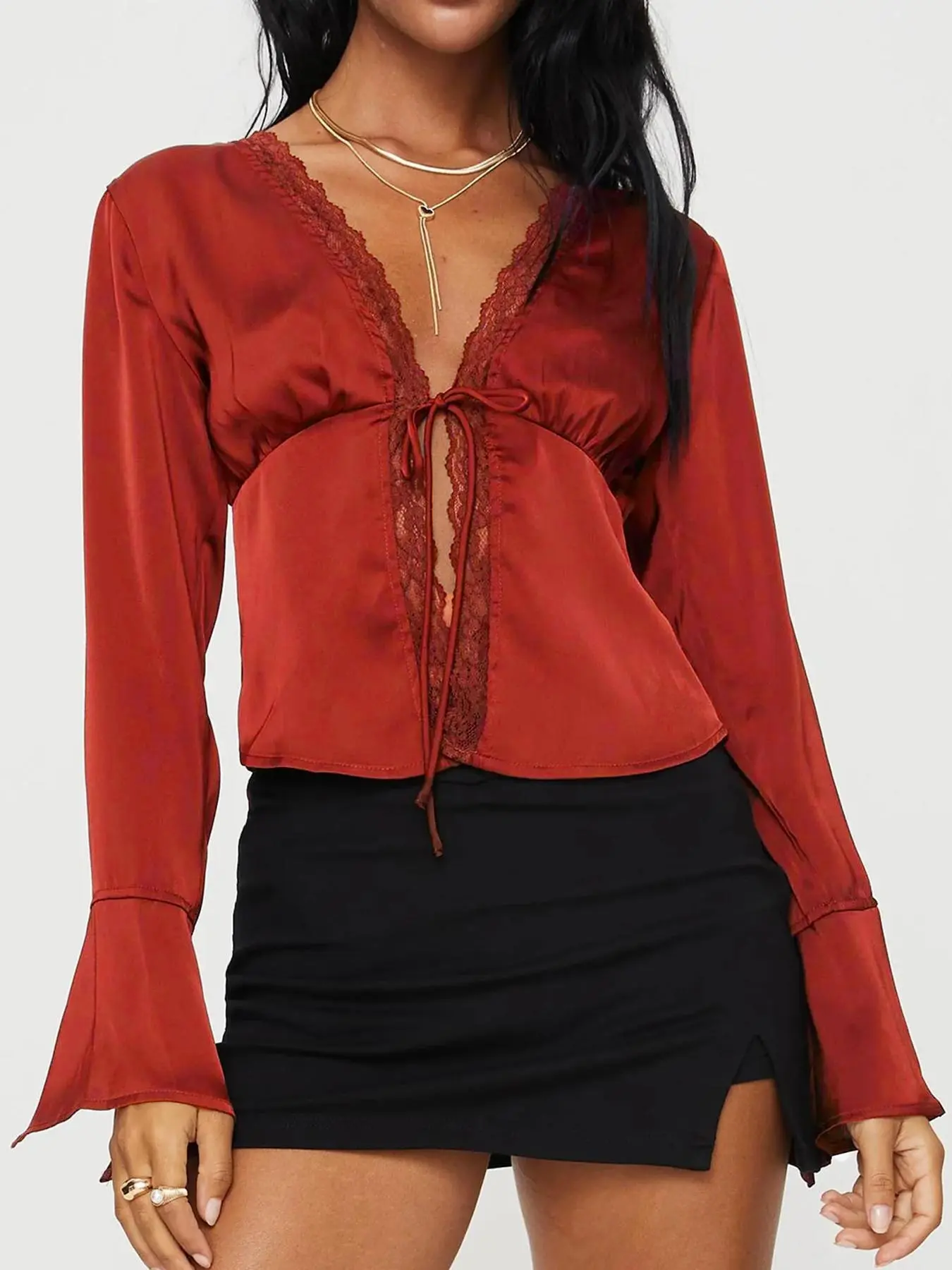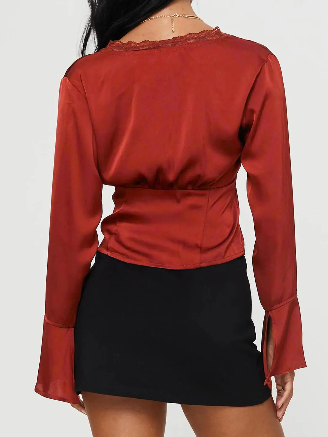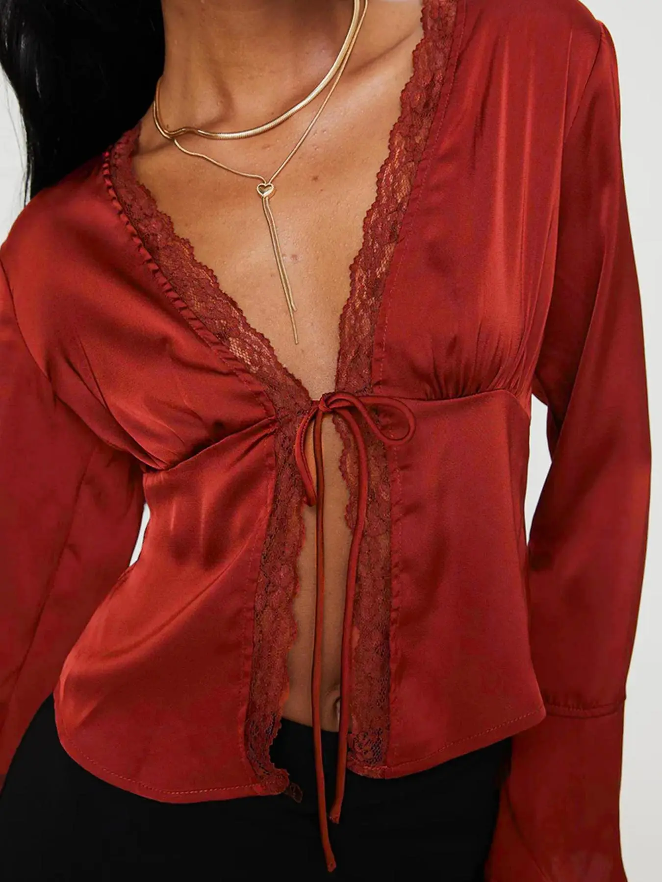 【Intricate Lace Trim】: Features a delicate lace trim that adds a unique touch, distinguishing it from standard long sleeve blouses.