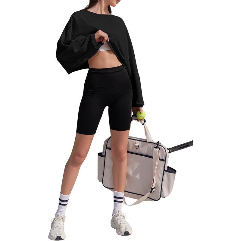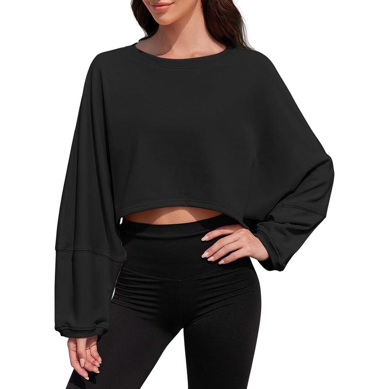 ·Feature: The design of cropped length, slouchy crew neck and drop shoulder adds a modern and flattering touch to your outfit, allowing you to showcase your style while staying comfortable during your workouts or casual outings.