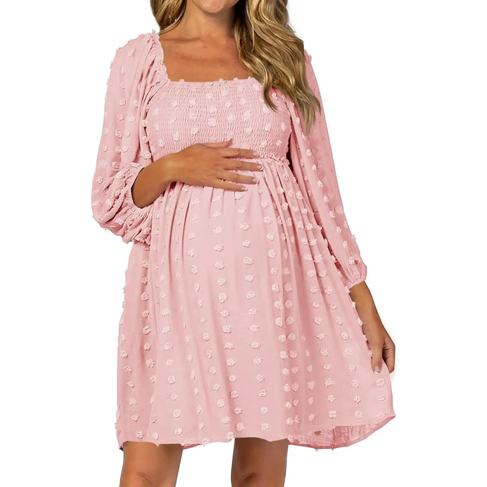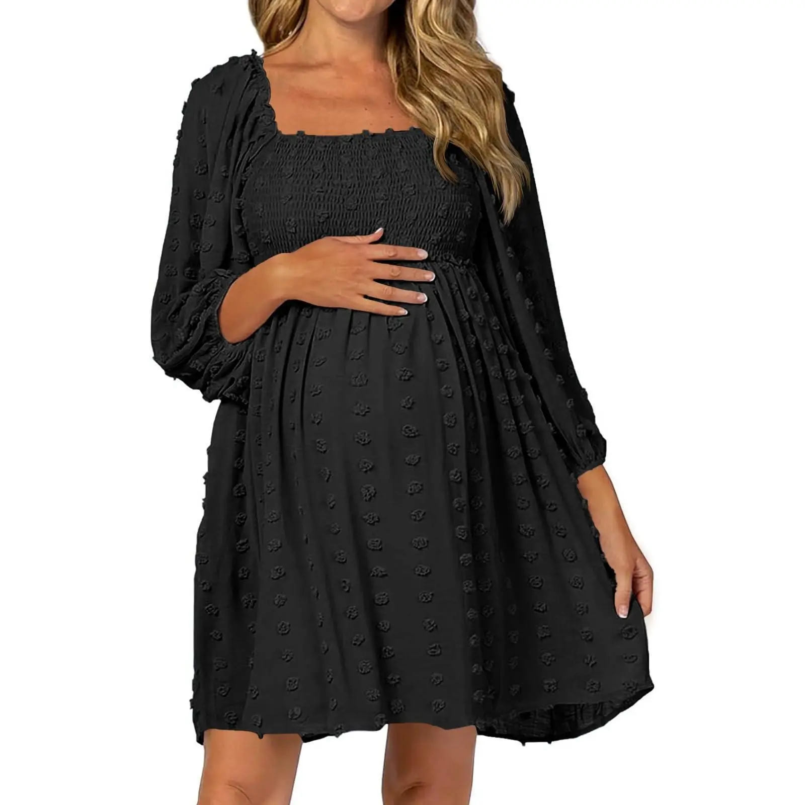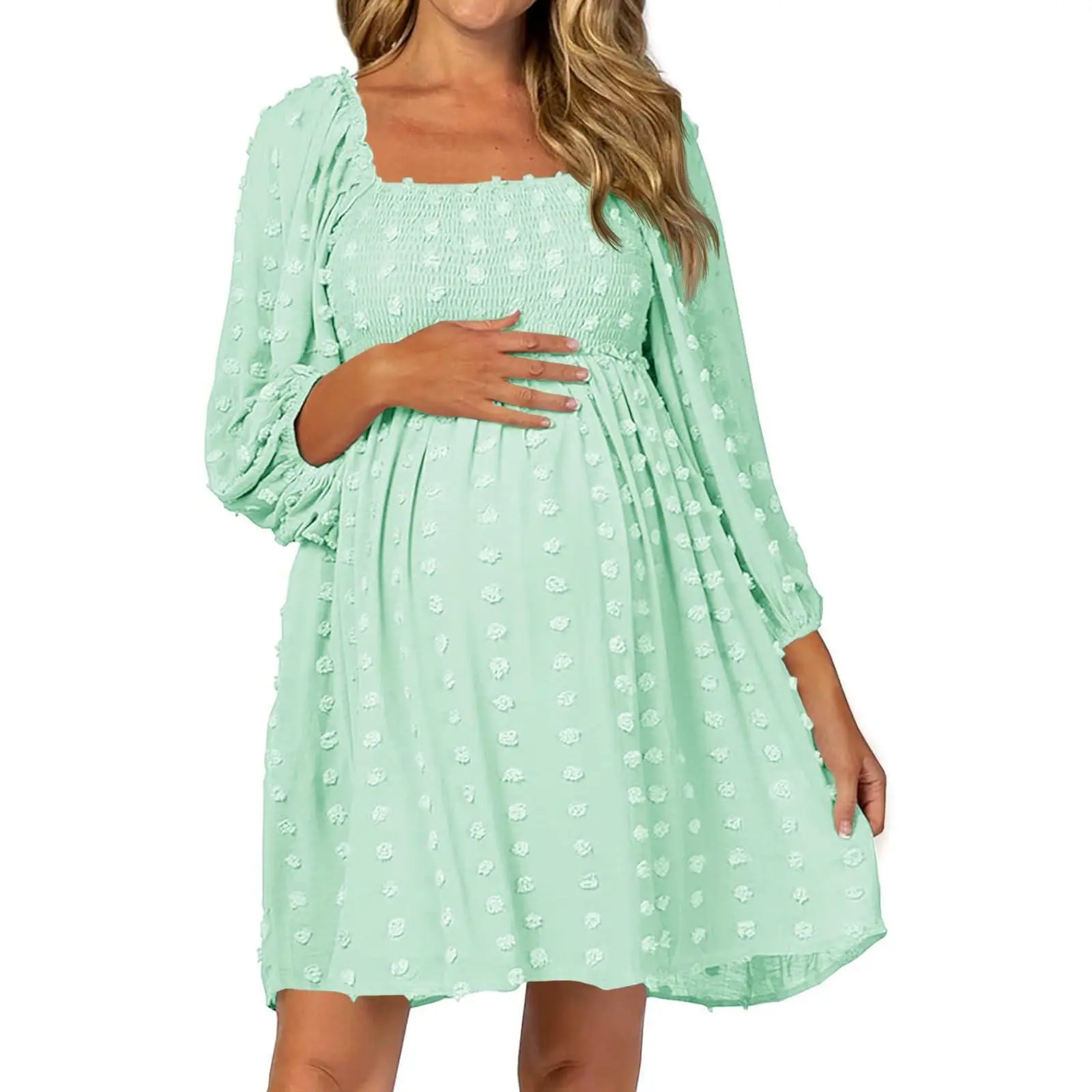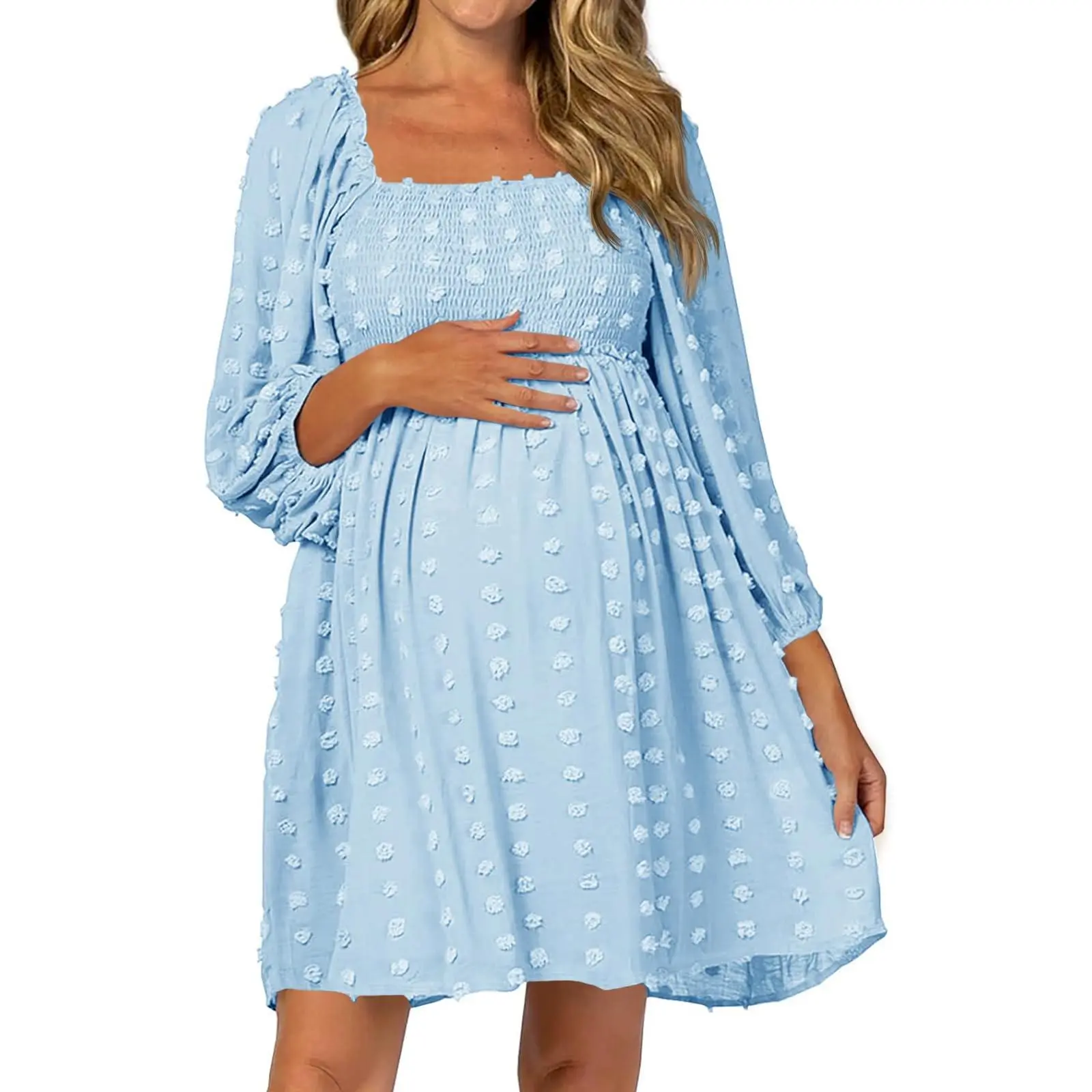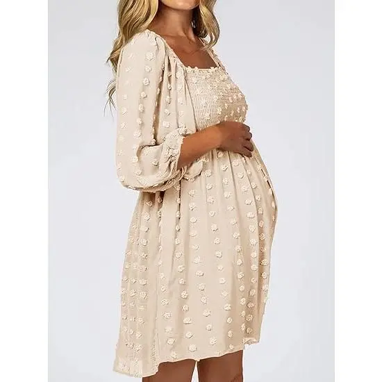 Material: Maternity dress is soft, lightweight and skin-friendly . Note: The Sleeve is See-Through. Dress is loose style, it's recommended to choose a small size.