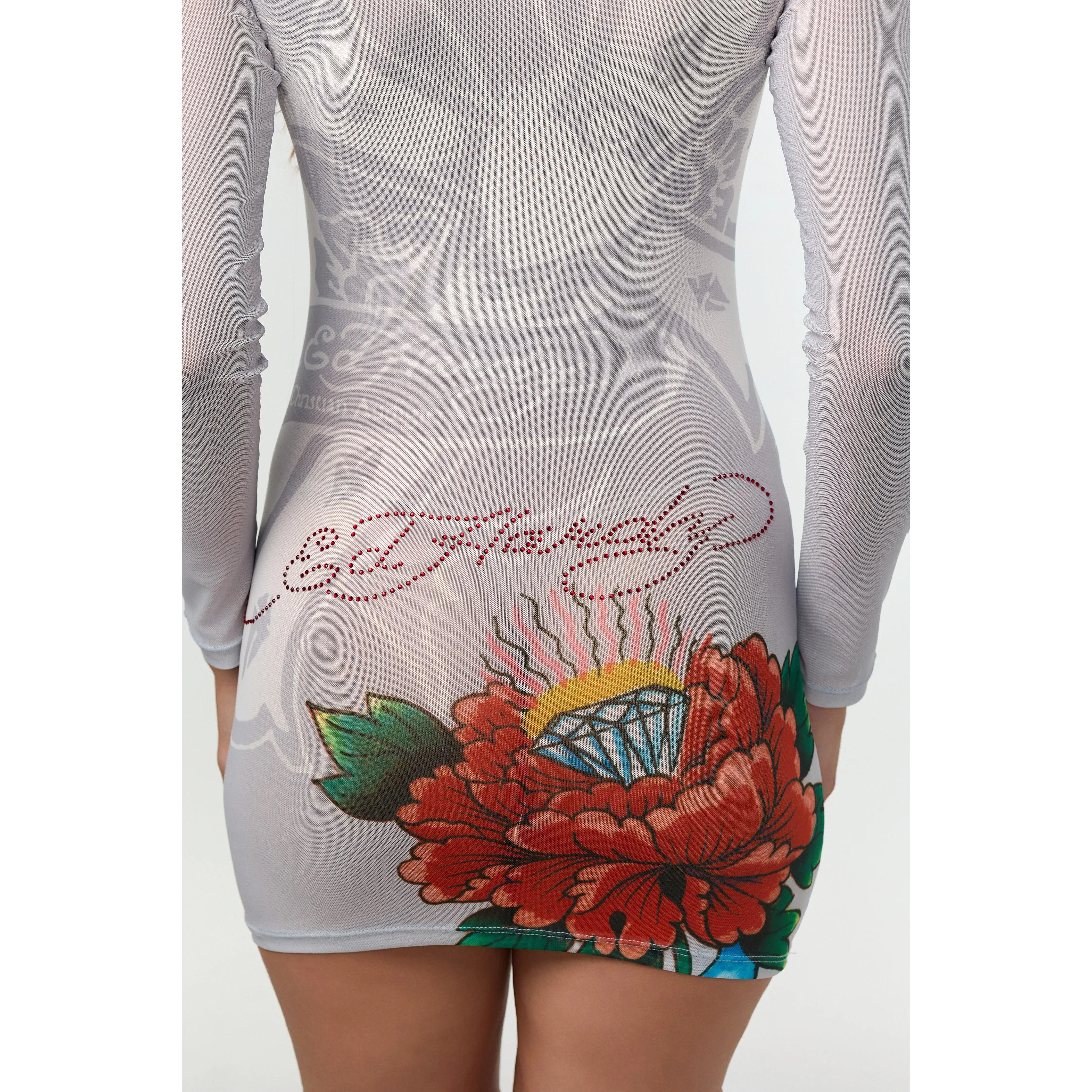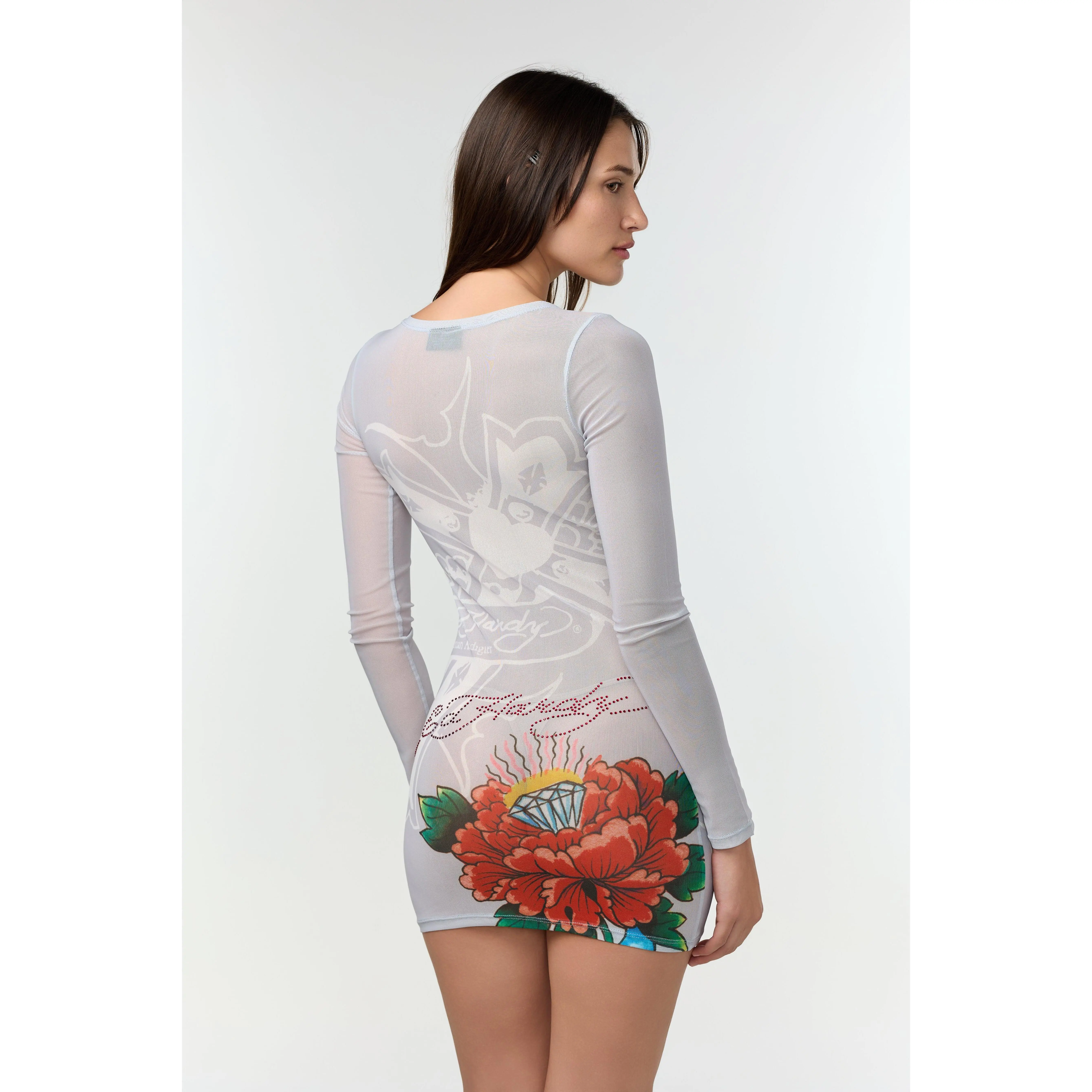 Mesh dress cover up with artwork printed on each panel. Ready to ship. All Sales are final.