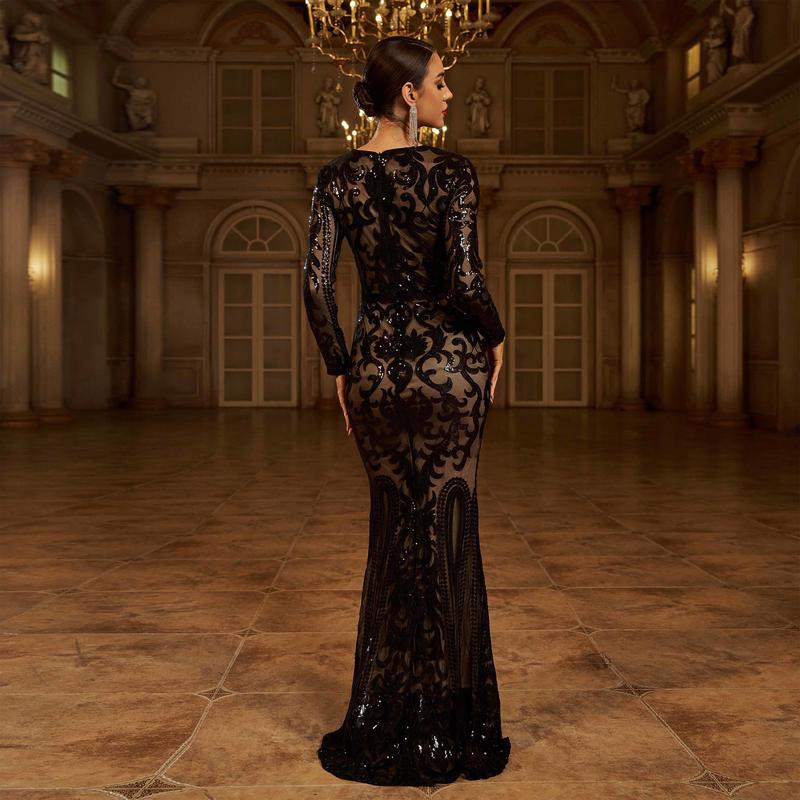 Vestido largo negro de manga larga con bordado elegante y detalles en lentejuelas. Su diseño estiliza la figura y aporta un look sofisticado y glamuroso, ideal para eventos formales. Disponible con oferta por tiempo limitado 🖤✨ @MISS ORD  #tiktokshopcreatorpicks #loveatfirstsight #valentinesday #girl #love