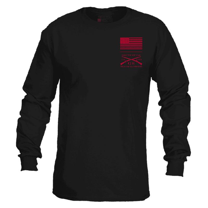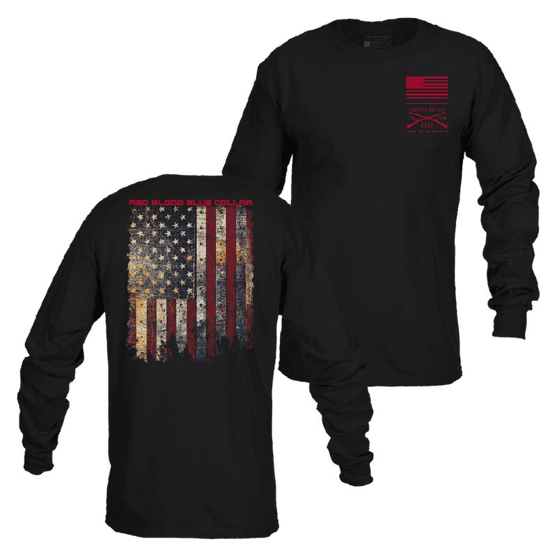 This product is being 86ed! Quantities and sizes are limited - What we have is what we have, so get them before they’re gone.Browse more of our patriotic shirts, designed for the Blue Collar Badass!Our Grunt Style Long Sleeves are crafted with the following details:
