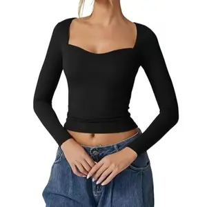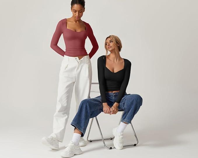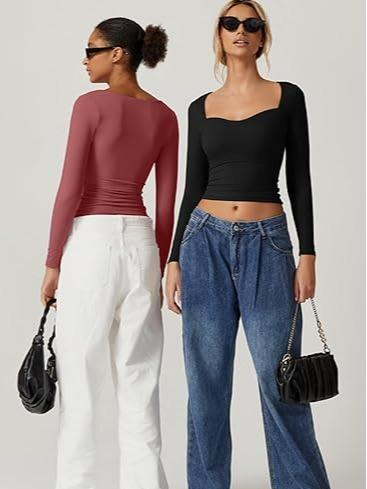 ·Elevate Your Style with Elegance: Embrace the perfect blend of comfort and allure with our Long Sleeve Sweetheart Neck Crop Top. Crafted to accentuate your silhouette, this top combines a bodycon fit with a decent cropped length, ensuring you make a statement without saying a word. Its sweetheart neckline, an artful evolution from the classic square neck, elegantly highlights your collarbones and adds a dash of sophistication to your summer wardrobe.