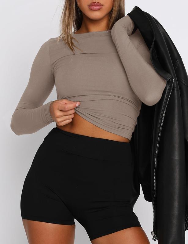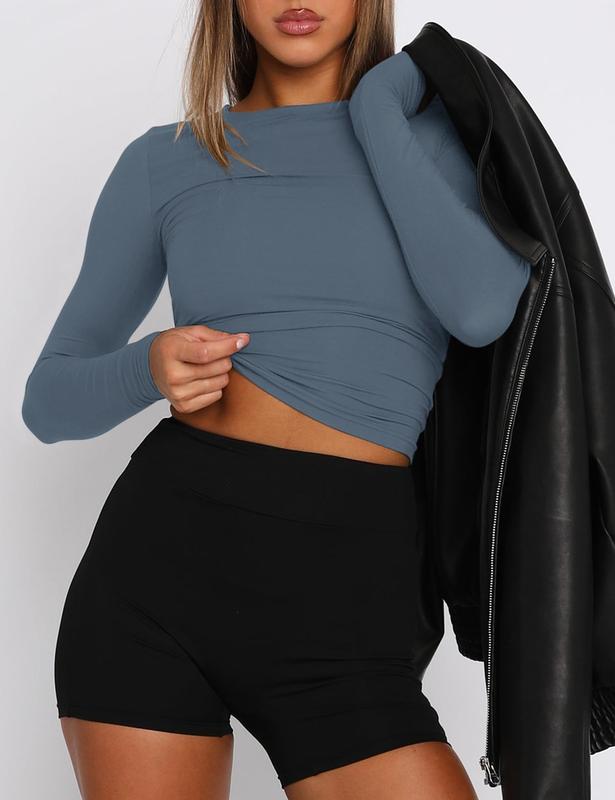 Elevate your wardrobe with this fitted long sleeve crop top! It features a buttery soft, lightweight, and stretchy material (92% Cotton, 8% Spandex). The boat neckline and slim fit ensure a flattering look. Perfect for daily wear, this top is an essential addition to your wardrobe.