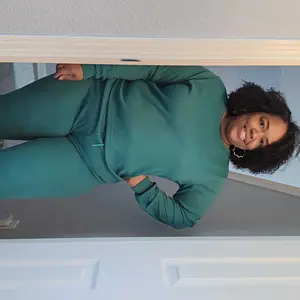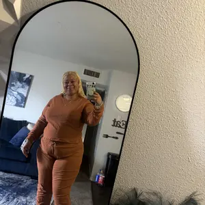 Love how soft it is. I got a size down manifesting that in this weight loss journey I’ve been on, this would fit good.It fits but if you just want to use it for lounging and relaxing then get your actual size or I’d size up for a losser fit bc the shirt is short.To go out I separated top & bottom.