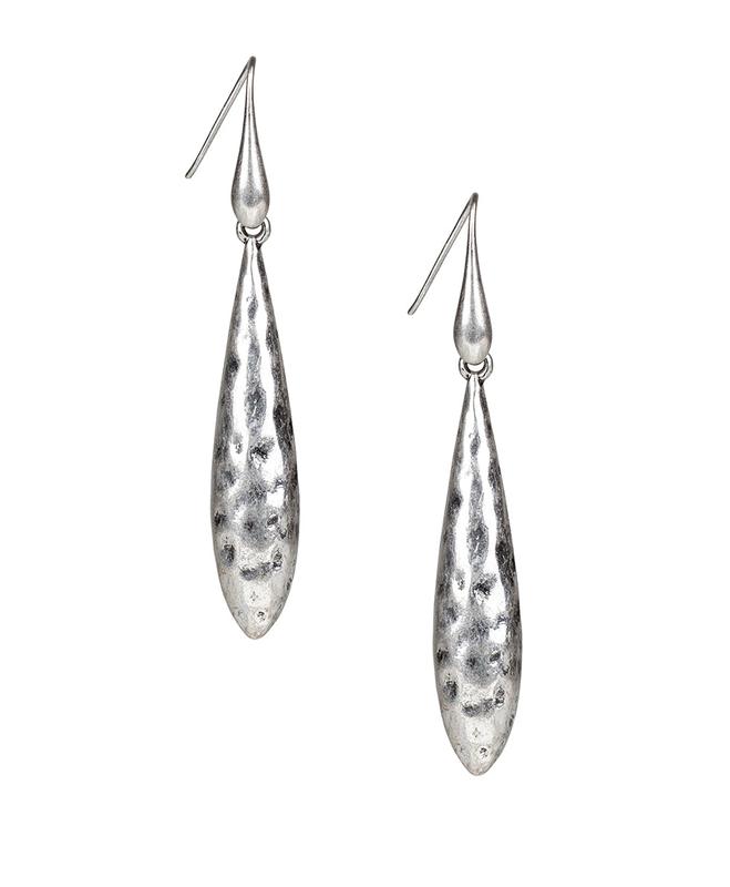 These earrings have a graceful, flowing silhouette while the hammered finish adds a subtle, reflective shine. They offer a touch of drama to any outfit. Whether dressing up for an evening out or enhancing your everyday style, they are a beautiful way to finish your look.