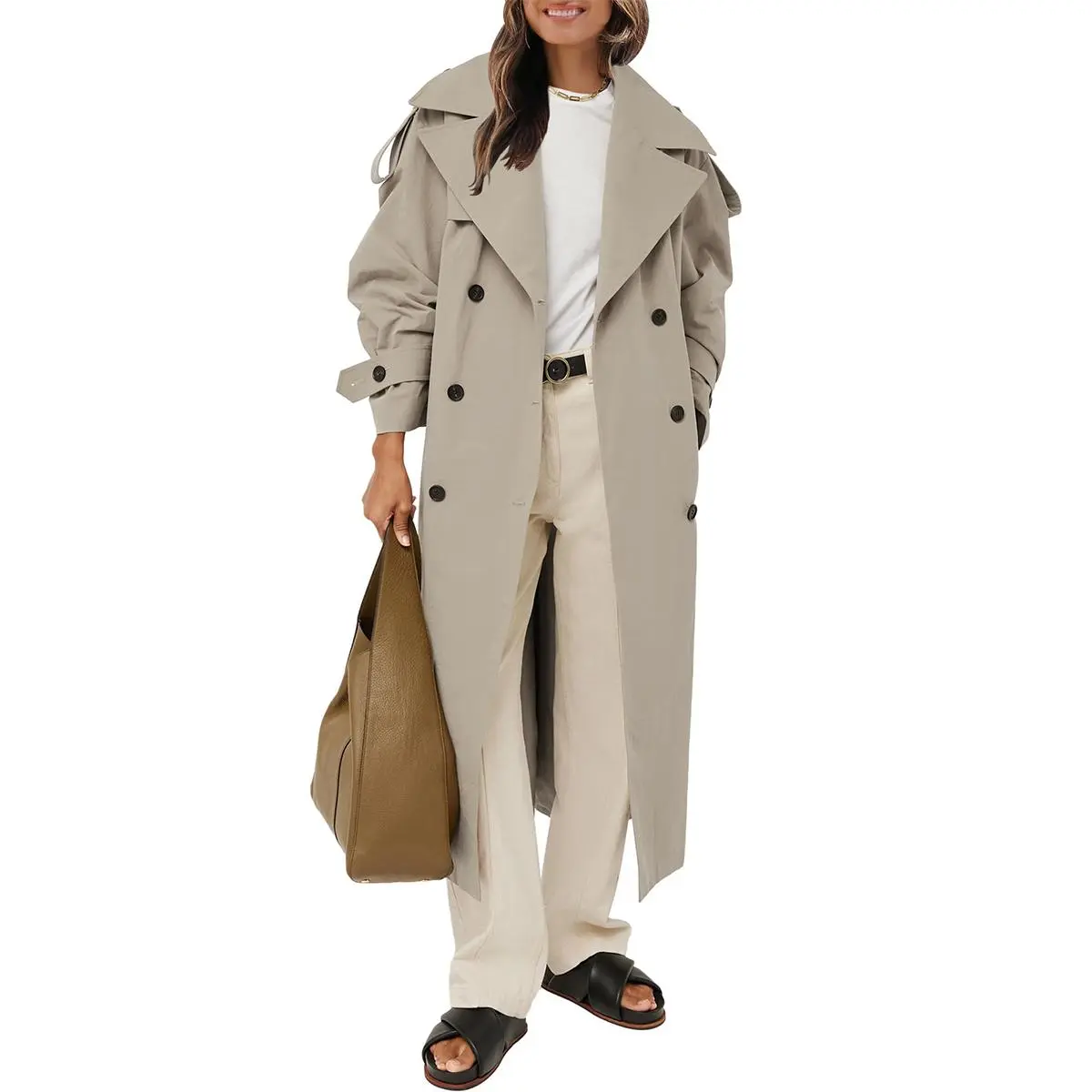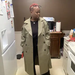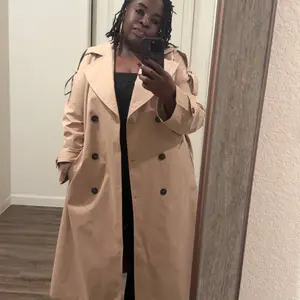I loooove this trench coat so much!!!! Amazing quality and so flattering. It elevates a basic outfit instantly! 10/10 purchase. Staple piece. Main character trench 🤩 for reference I’m 116 lbs, 5ft tall - I’m wearing a medium in light khaki