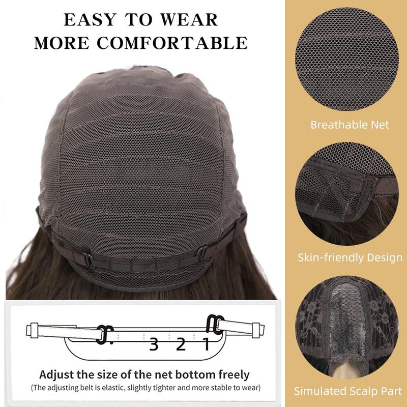 ·【Premium Material】:The high-quality heat-resistant fiber of this wavy brown mixed blonde wig can be ironed to 320°F.But all synthetic wigs will have a slight hair loss the first time they are worn,which is normal. We have minimized knotting and hair loss.