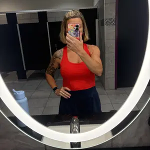 Love it! Ordered more! Not tight, not too short. Light weight smooth material. I wore it for running and walking. You can see the sweat but the material doesn’t make ya feel yucky, or soaked which was great since I did a lot of miles in it. Enough boob support and flattering!