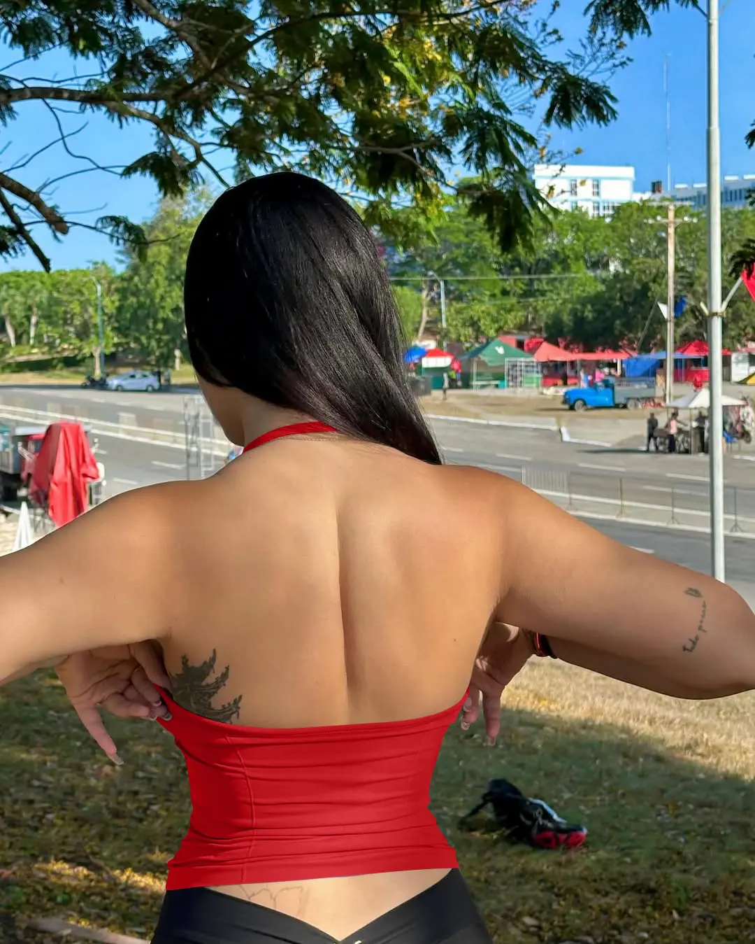 Very cute for the gym not to revealing and allows room for muscles to be visible good for girly photos of a good pump without being a bra