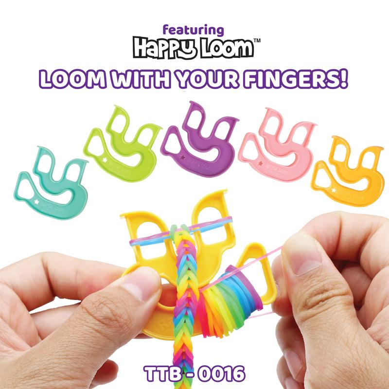 The Happy Loom makes bracelet-making simple. The Loomi-Pals Mini Combo Kit keeps everything neatly stored in a handy carrying case.