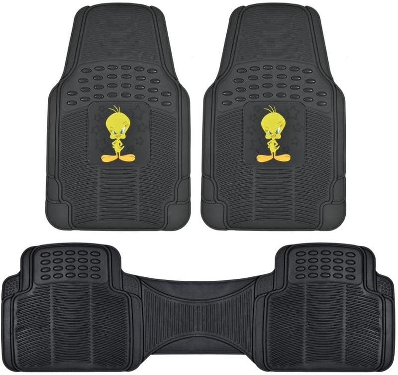 Looney Tunes Car Non-Slip Floor Mats (Full Sets) - Warner Bros Merrie Melodies Carpet Rubber Trimmable Tweety Bird Taz Marvin Cartoon Universal Fit Floor Liner Protection