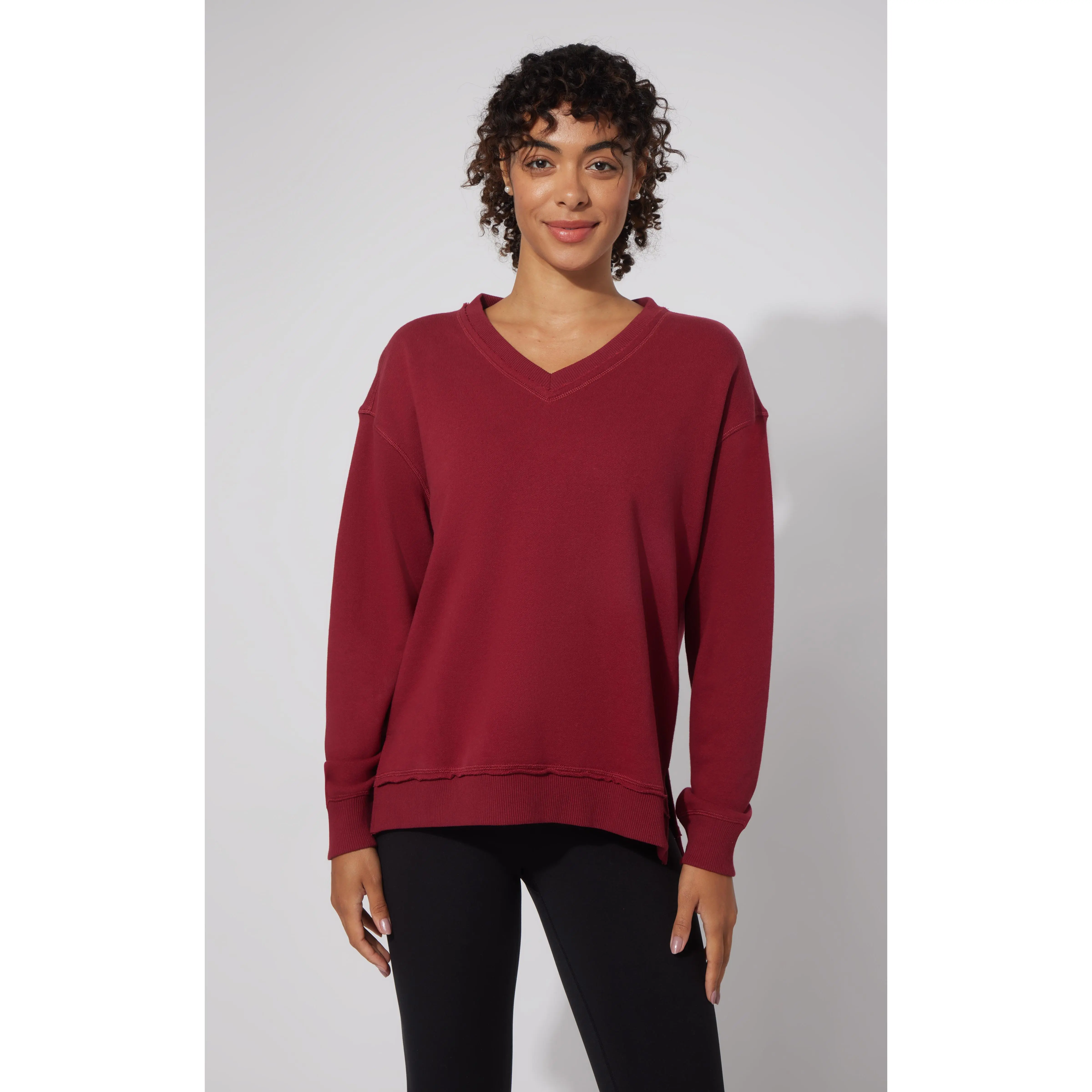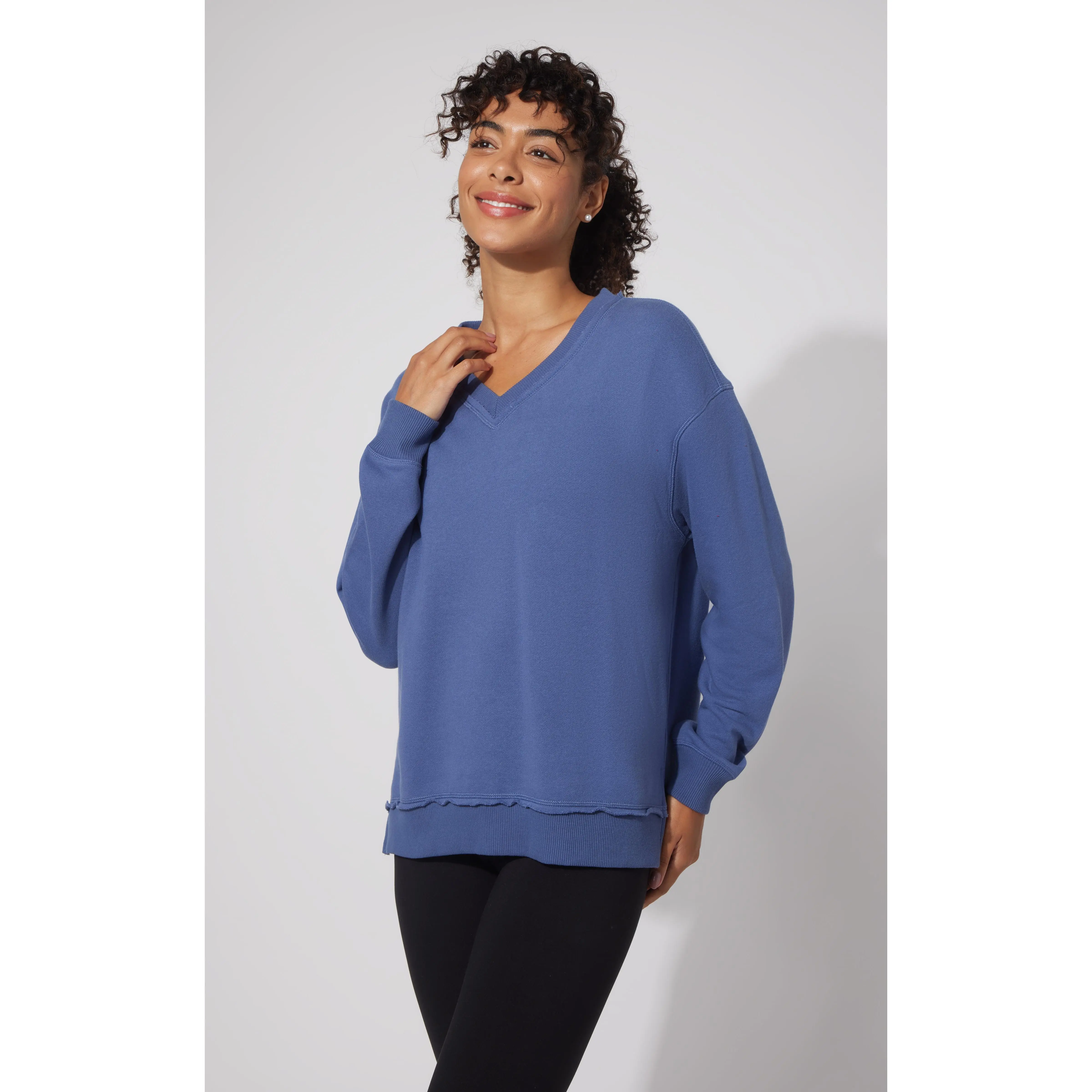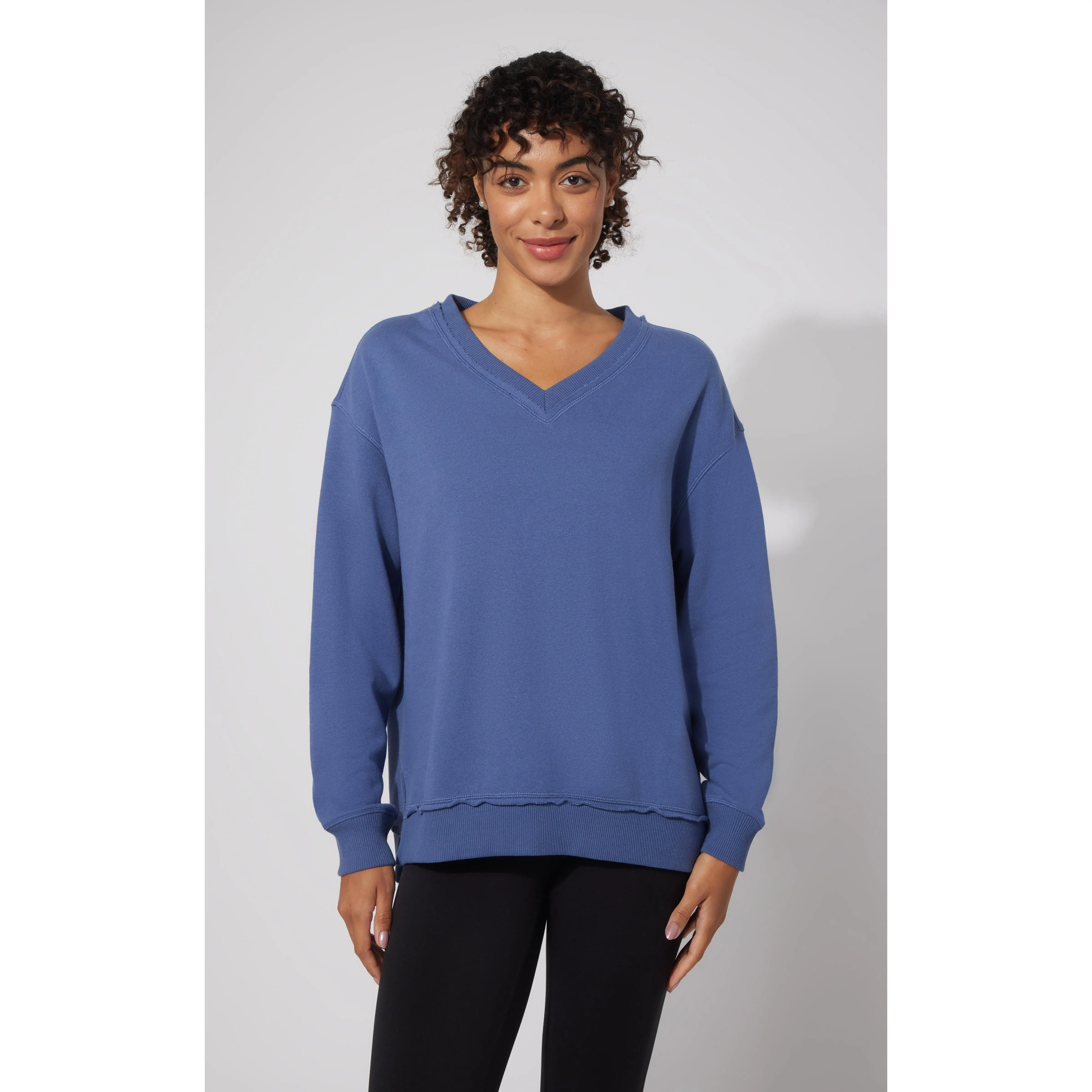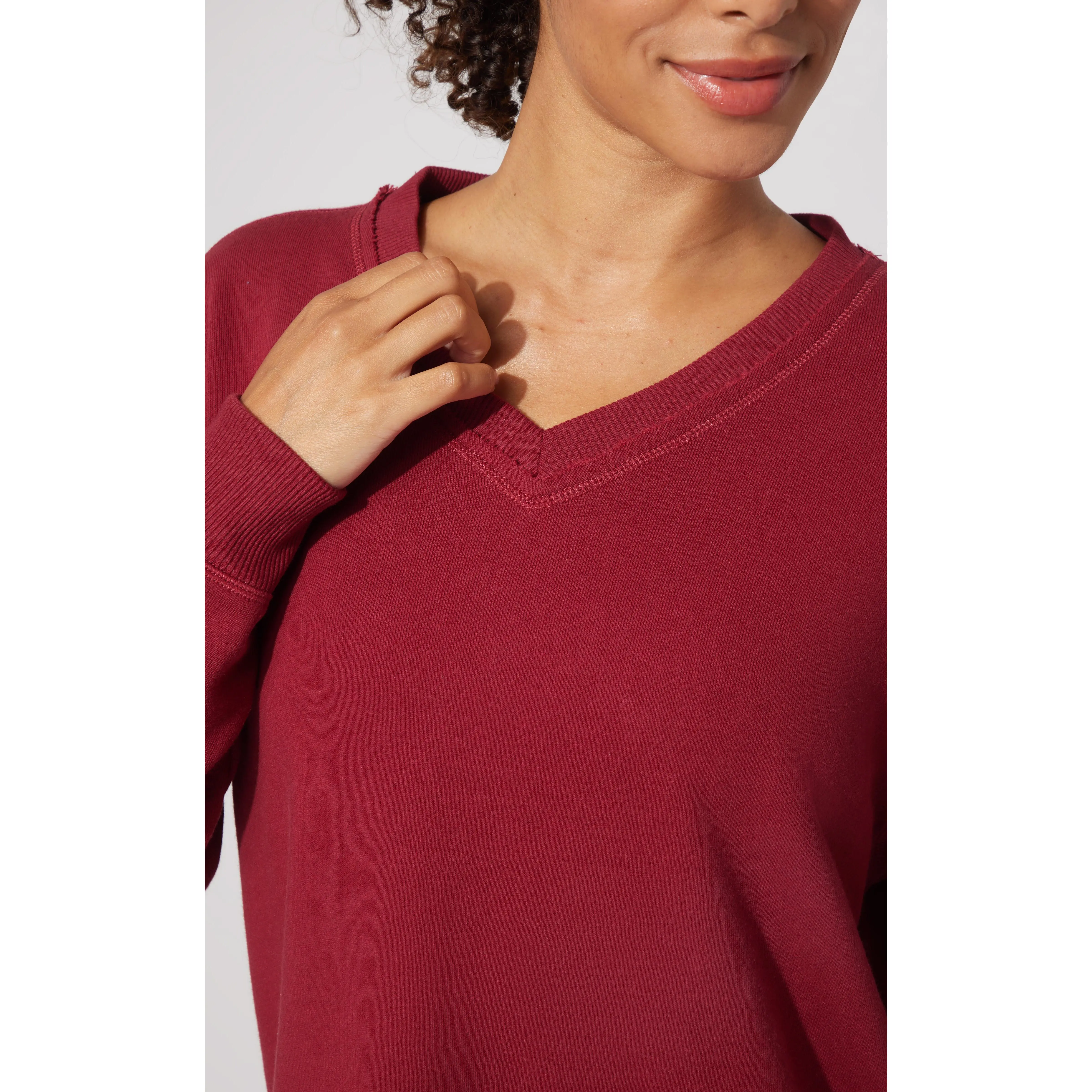 The Loop Terry V-Neck Oversized Pullover offers a relaxed, comfortable fit with its oversized design and soft loop terry fabric. The V-neckline adds a refined touch, making it versatile for layering or wearing on its own. Ideal for casual wear, this pullover combines effortless style with cozy comfort.