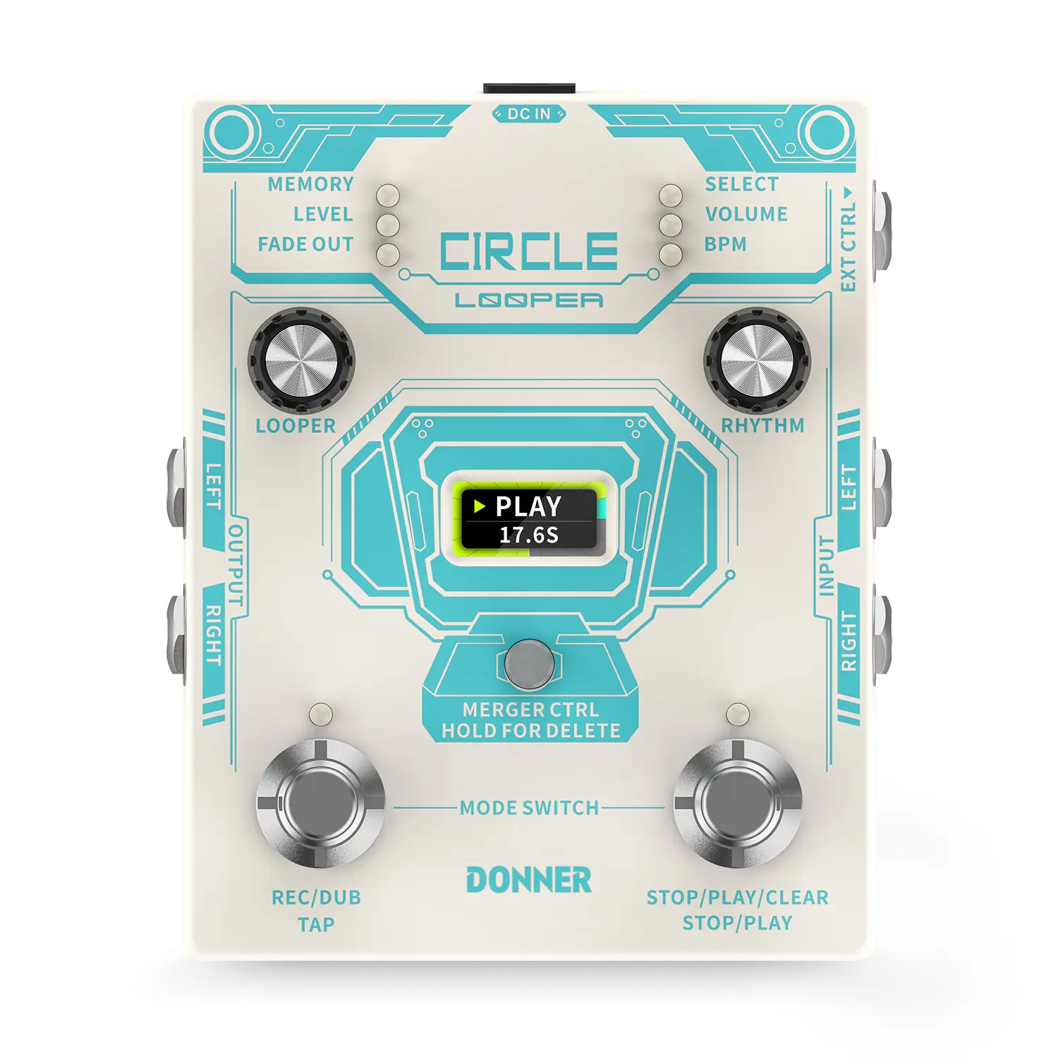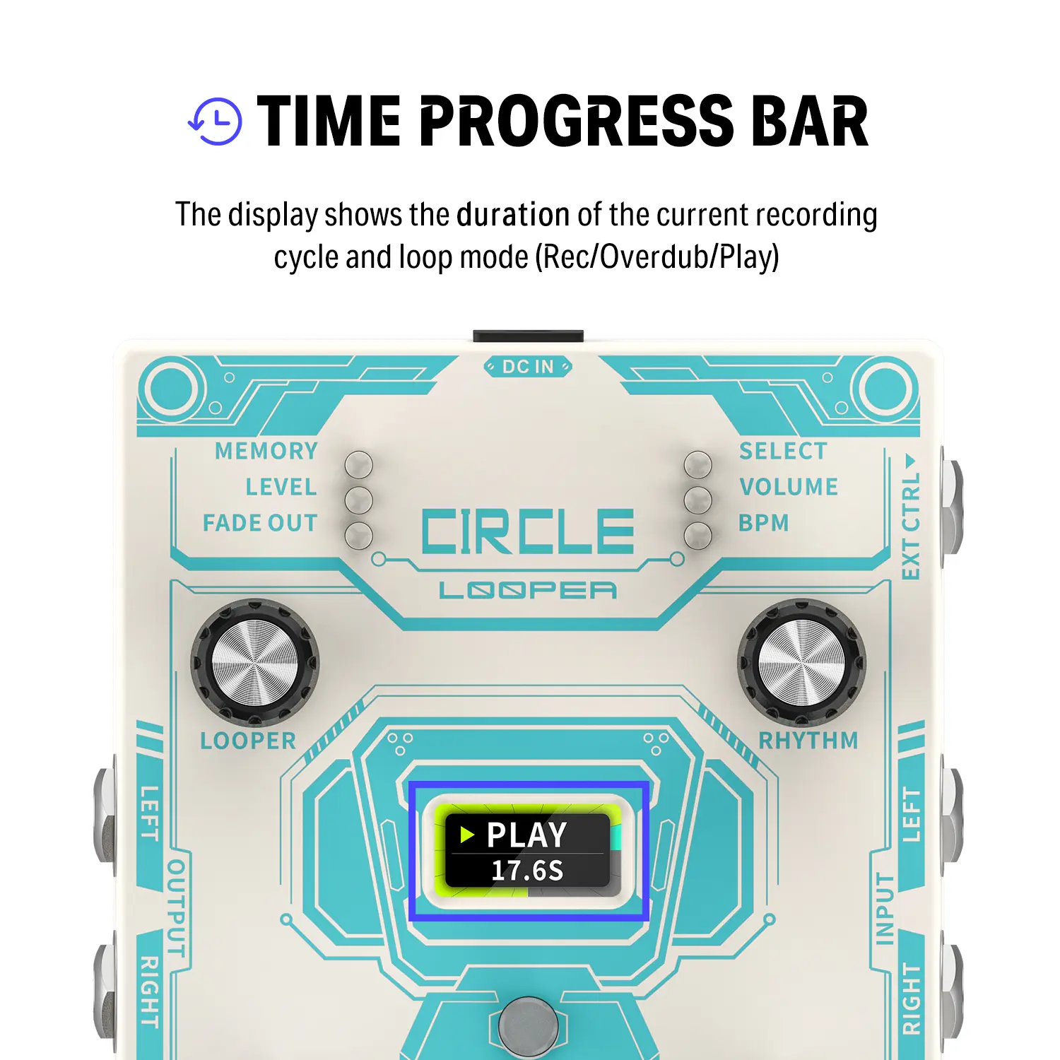 ·Looper with Screen: The bright screen shows the current loop mode, time progress, and accurate timing, so just focus on playing!