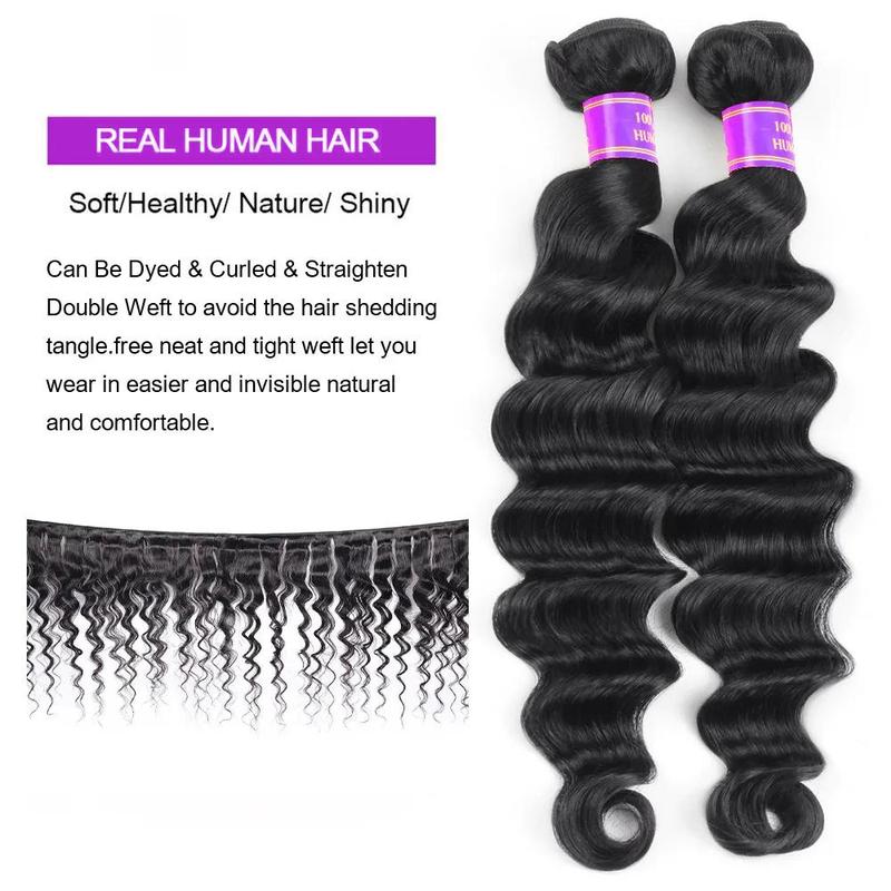 Hair Material: Remy Human Hair Bundles, Loose Deep Wave Hair, Can Be Dyed and Bleached Easily.
