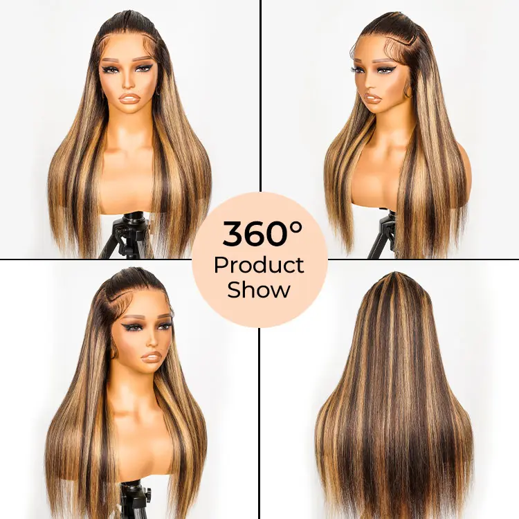 5. [LIVE SUPER DEAL] West Kiss Pre Braided Glueless 13x4 Lace Frontal Wig Highlight Straright Hair Human Hair Wig Pre Plucked Pre Everything Wig