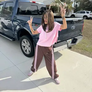 🌟 Flooo Loose Wide Leg Striped Track Pants Women Casual Streetwear Joggers 🌟