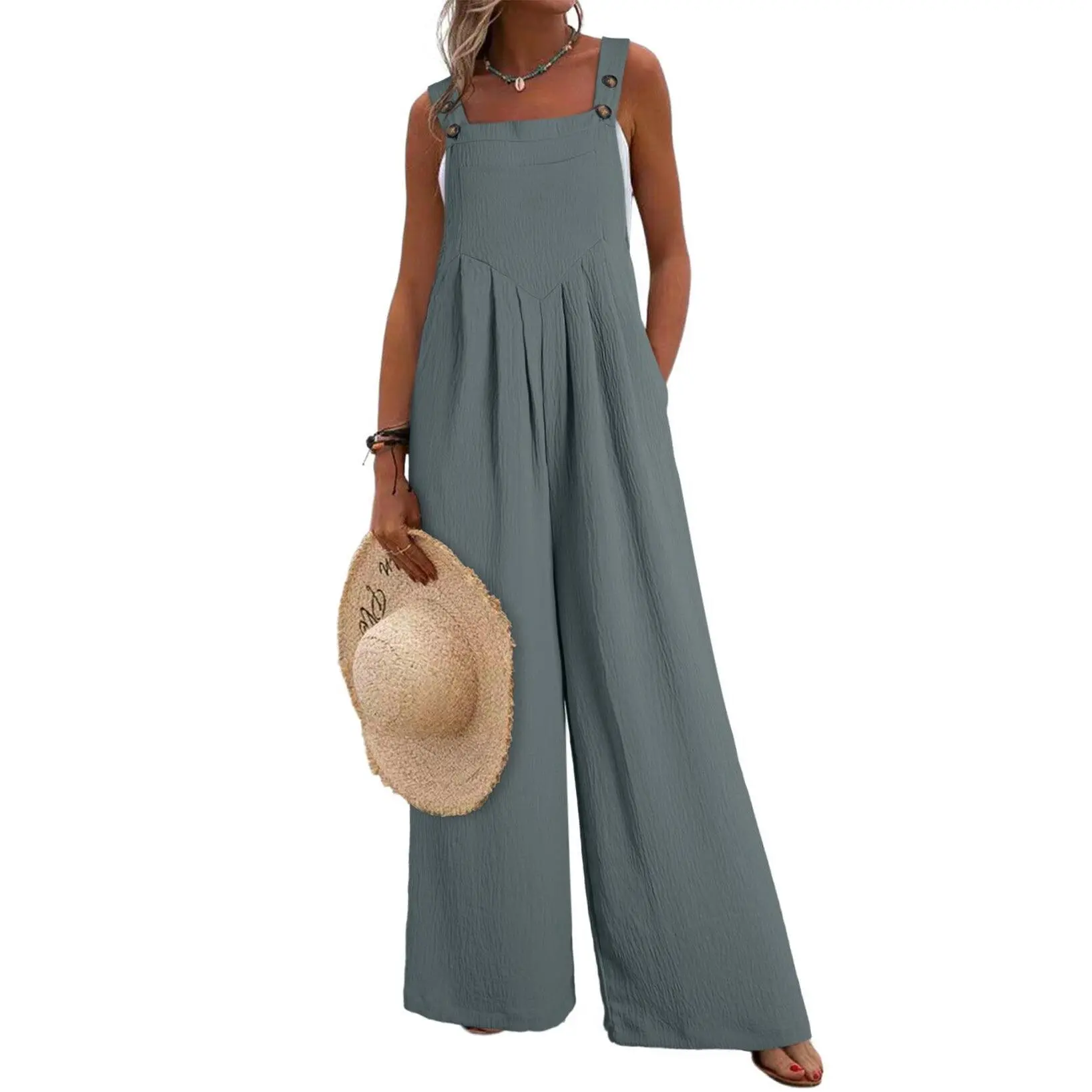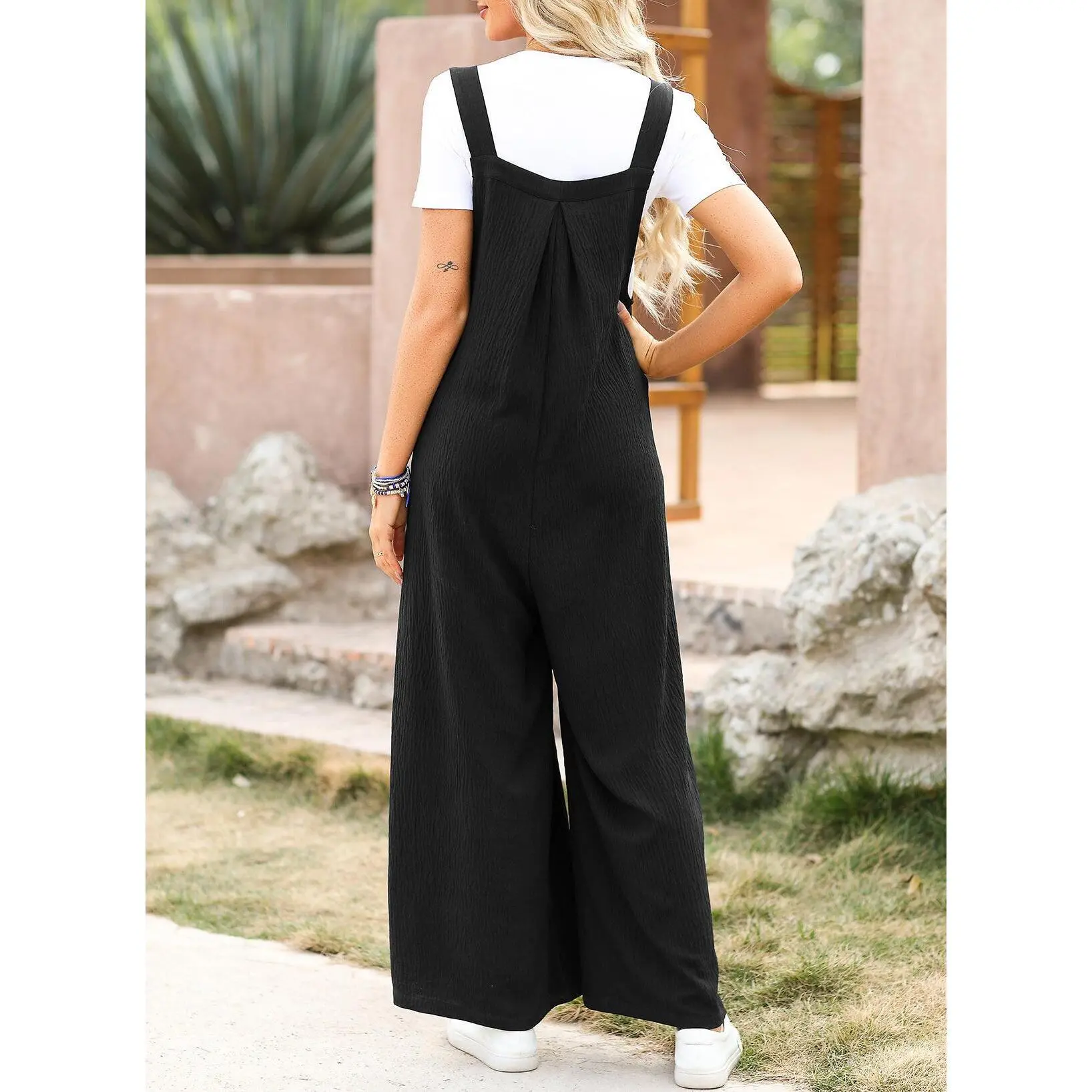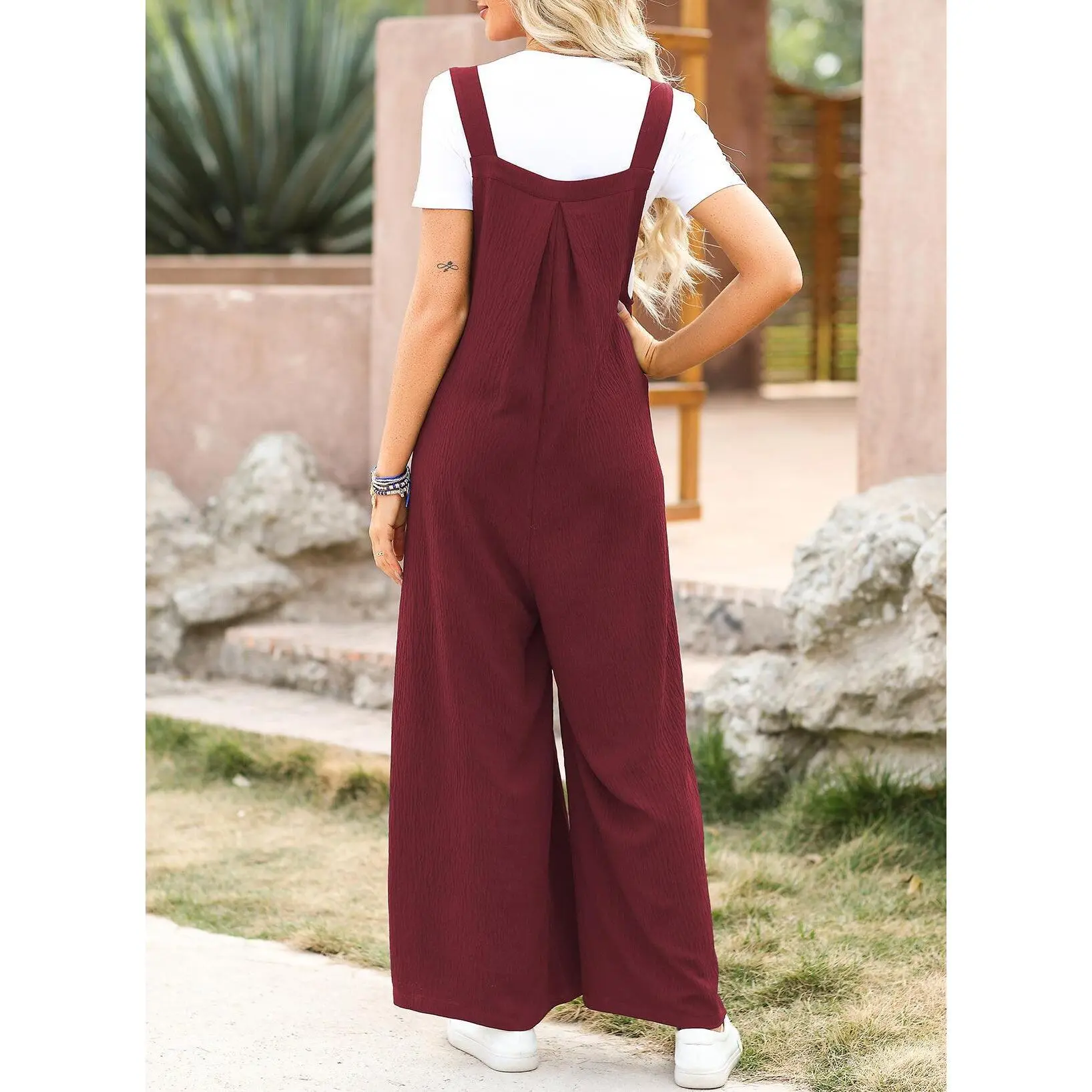 ·Feature: One Piece Sleeveless Jumpsuits, Square Neck, Wide Leg Pants, Two Side Pockets, Solid Color, Stretchable Long Pants Jumpsuit, Loose Fit, Casual Style.