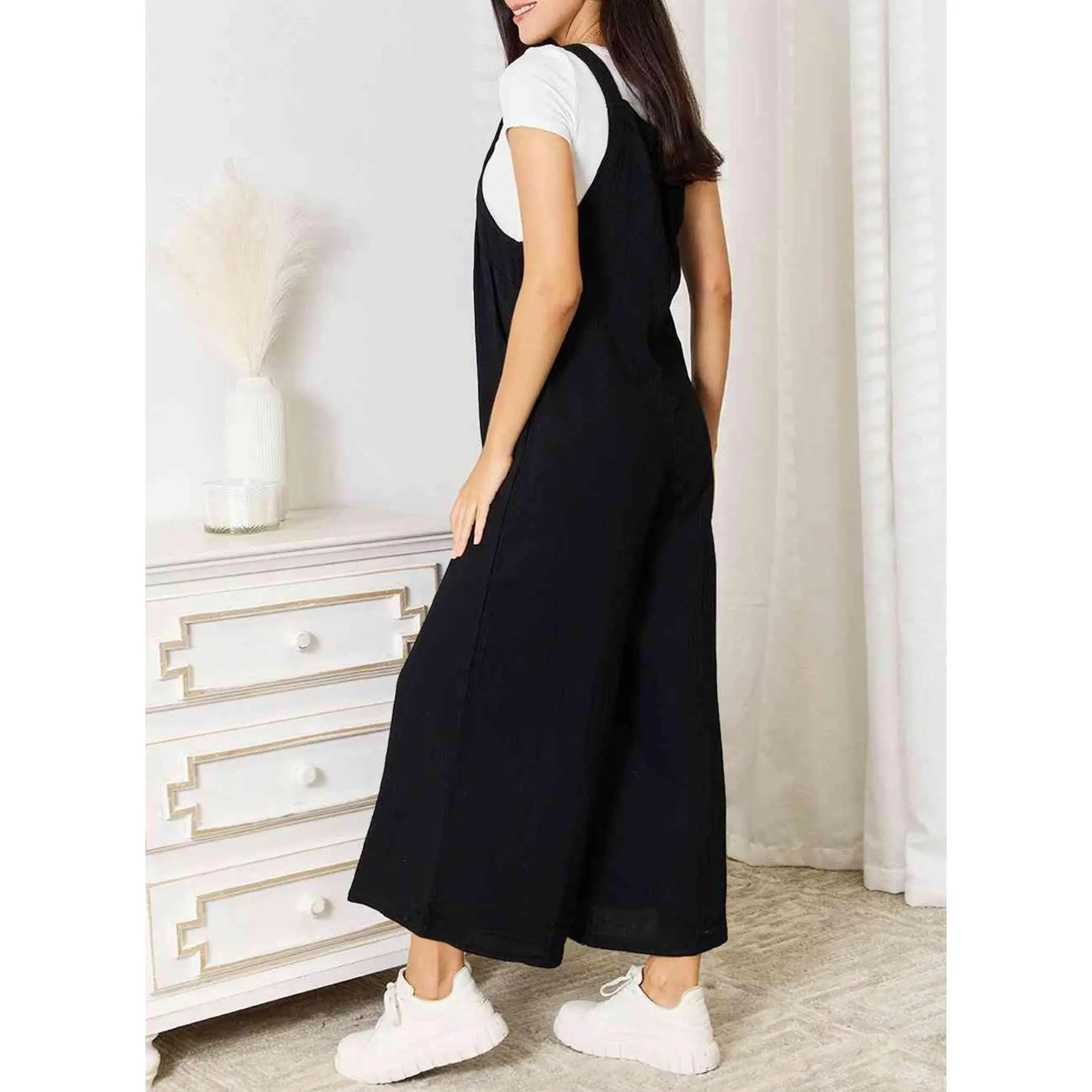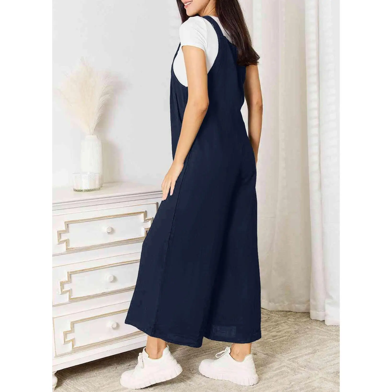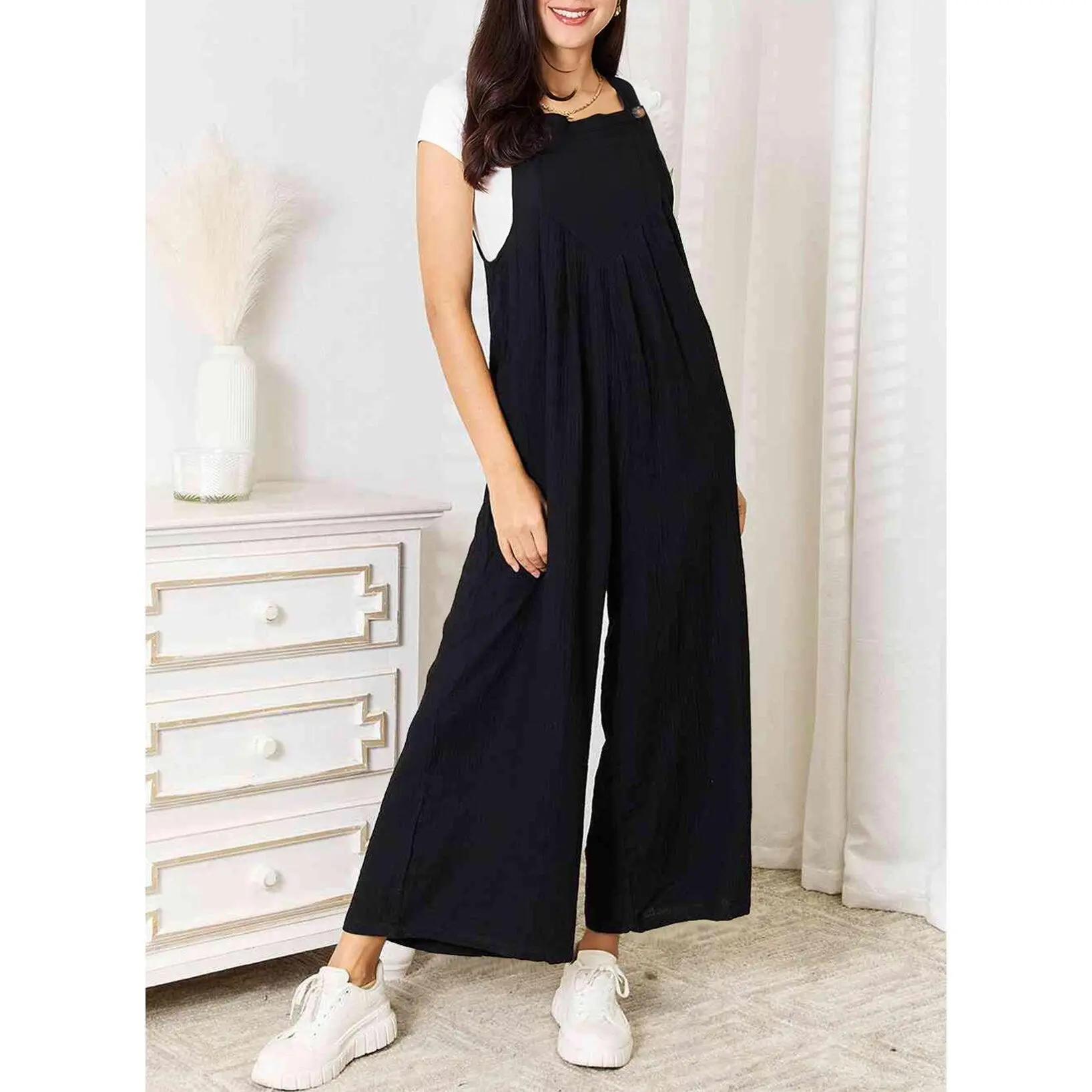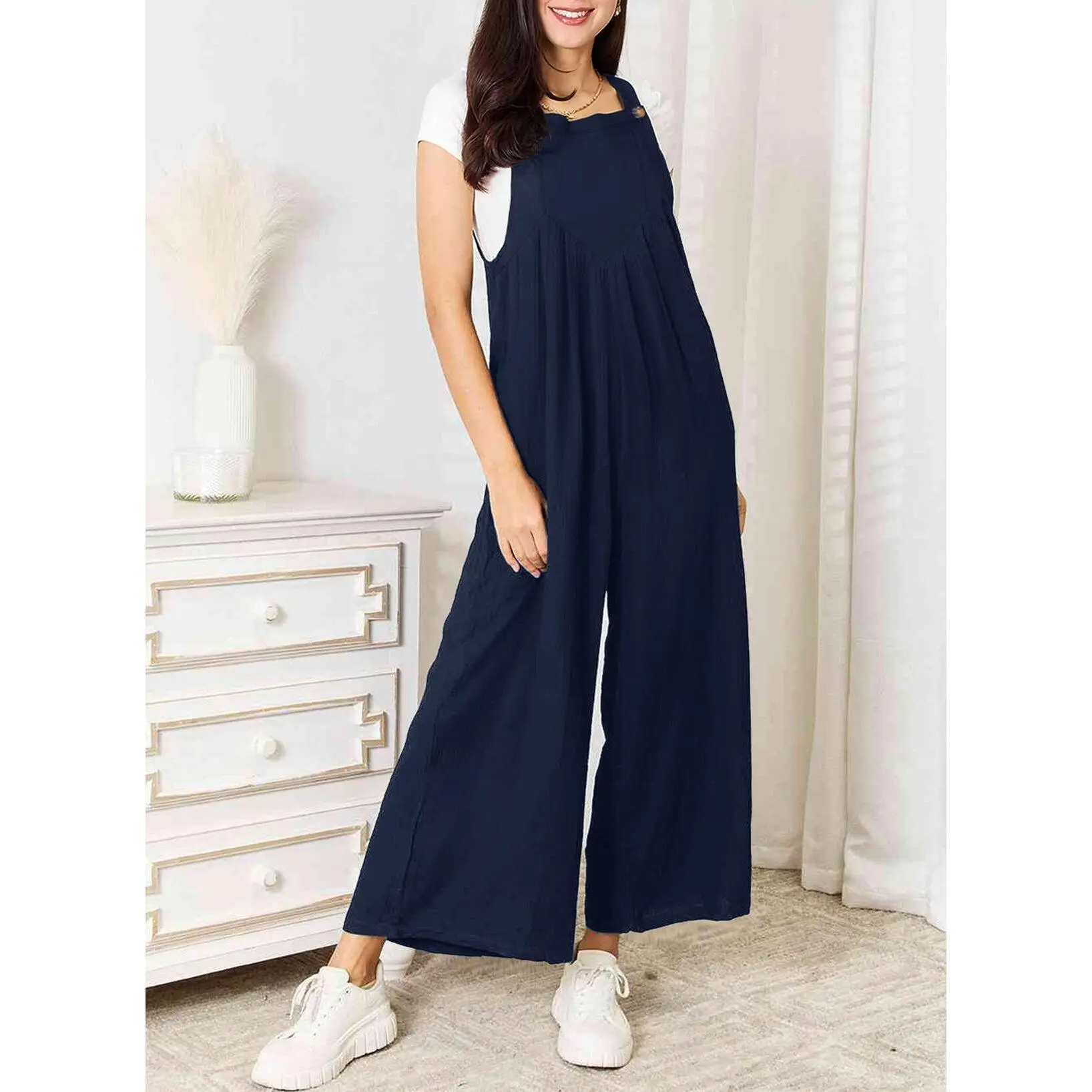 ·Feature: One Piece Sleeveless Jumpsuits, Square Neck, Wide Leg Pants, Two Side Pockets, Solid Color, Stretchable Long Pants Jumpsuit, Loose Fit, Casual Style.
