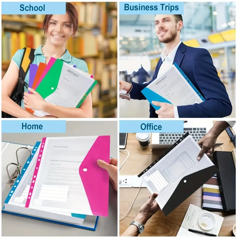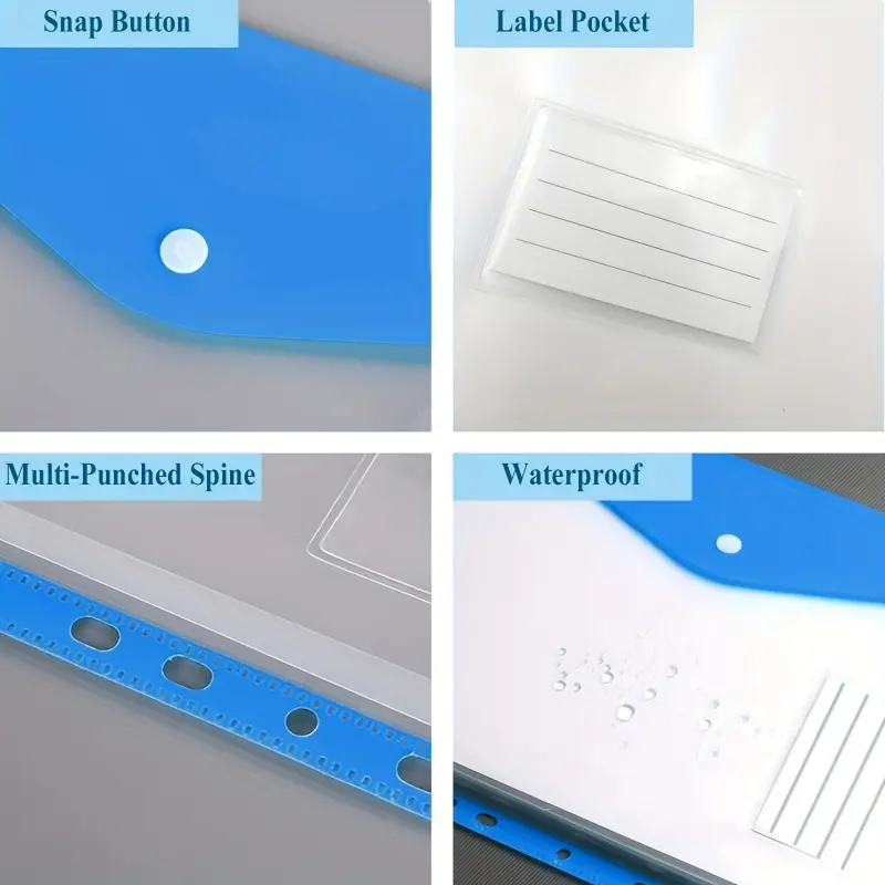 Loose-leaf folder pocket, ring-bound loose-leaf book. Snap-lock and foldable folders with retractable plastic covers, suitable for use in schools, offices or households, Binder Organizer
