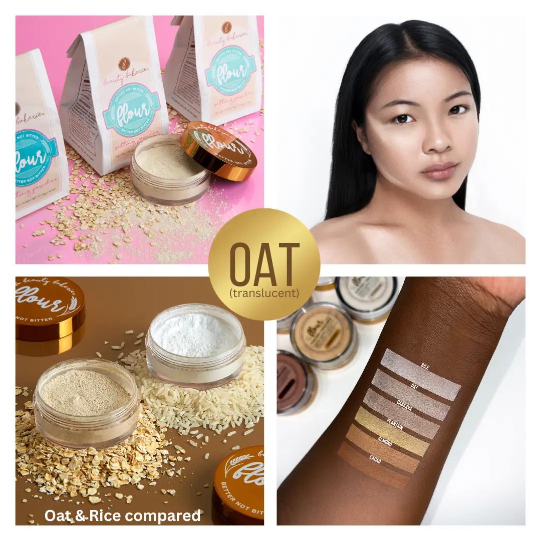 Our finely-milled, gluten-free, vegan, Oat (Translucent) Flour® Setting Powder allows you to set your concealer and foundation in place for a long day's wear. This amazing, colorless formula puts the oily face battle to rest. With an HD feature, it will noticeably blur your pores and soften your complexion leaving you with a beautiful, matte finish. Plus, the jar's lock mechanism prevents product from spilling out - so you can bake with every. last. bit!