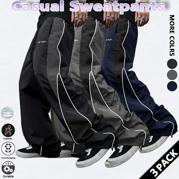 These Loose Sports Pants feature grey side stripes and a gold accent stripe, offering a stylish athleisure look. Perfect for gym sessions or casual wear, these bottoms blend comfort with style. The design ensures ease of movement, making them ideal for athletic activities. 🏋️♂️