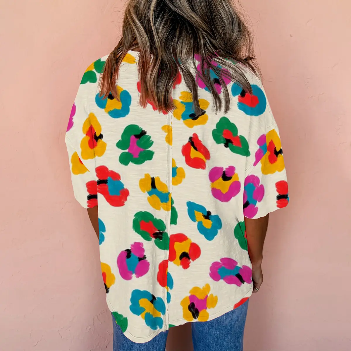 Replying to @Mrs. P , I love hearing this. 🩷 The colors are even better in person and it’s such a fun easy top to throw on with jeans. #top #leopardprint #colorfulfashion #commentreply #tiktokshopcreatorpicks