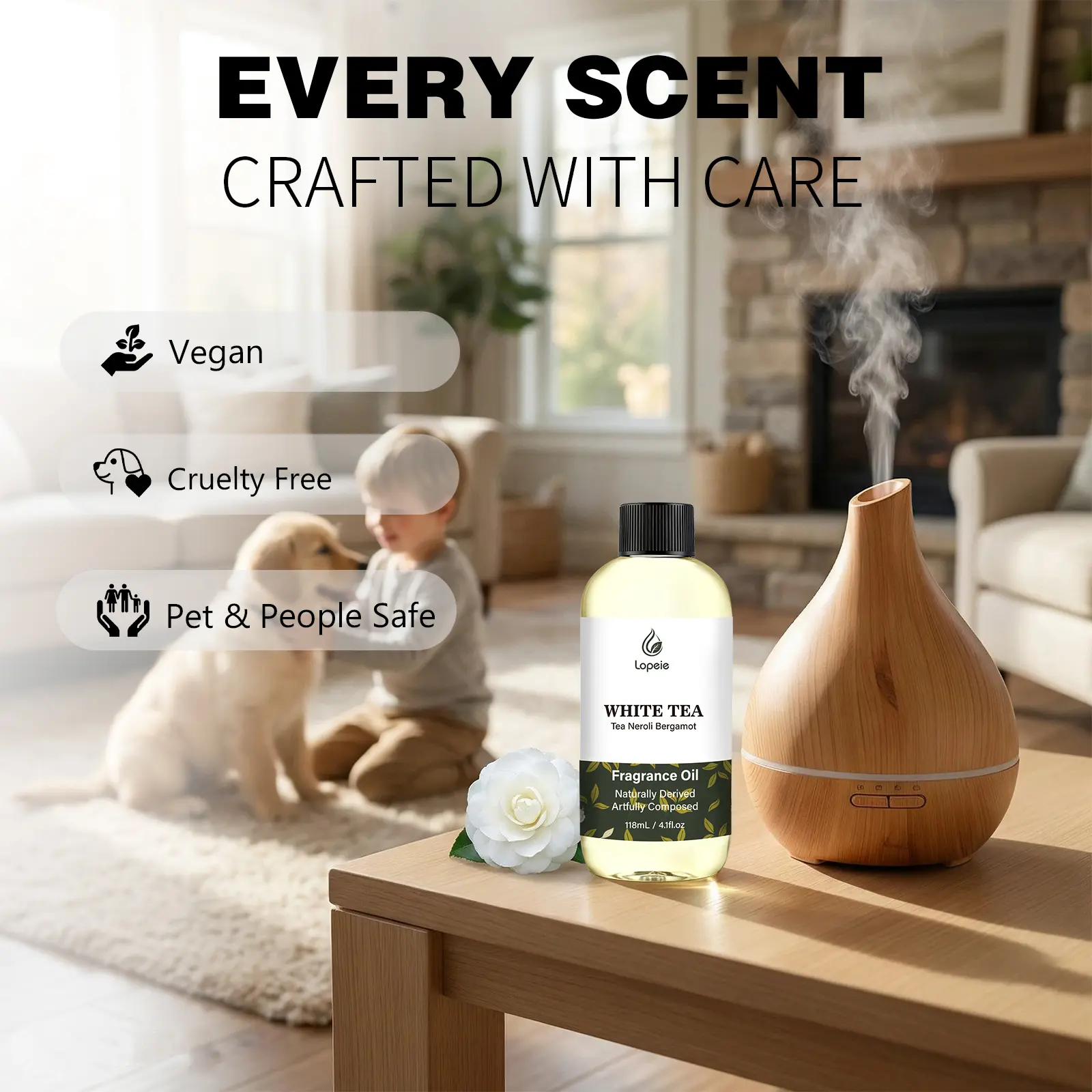 This aromatherapy essential oil has a very pleasant scent, with a fresh and elegant aroma of white tea and jasmine, without being pungent. Placed in the aromatherapy machine, the whole room feels very comfortable, with a luxurious feeling similar to that of a hotel. It relaxes and helps with sleep, I really like it.