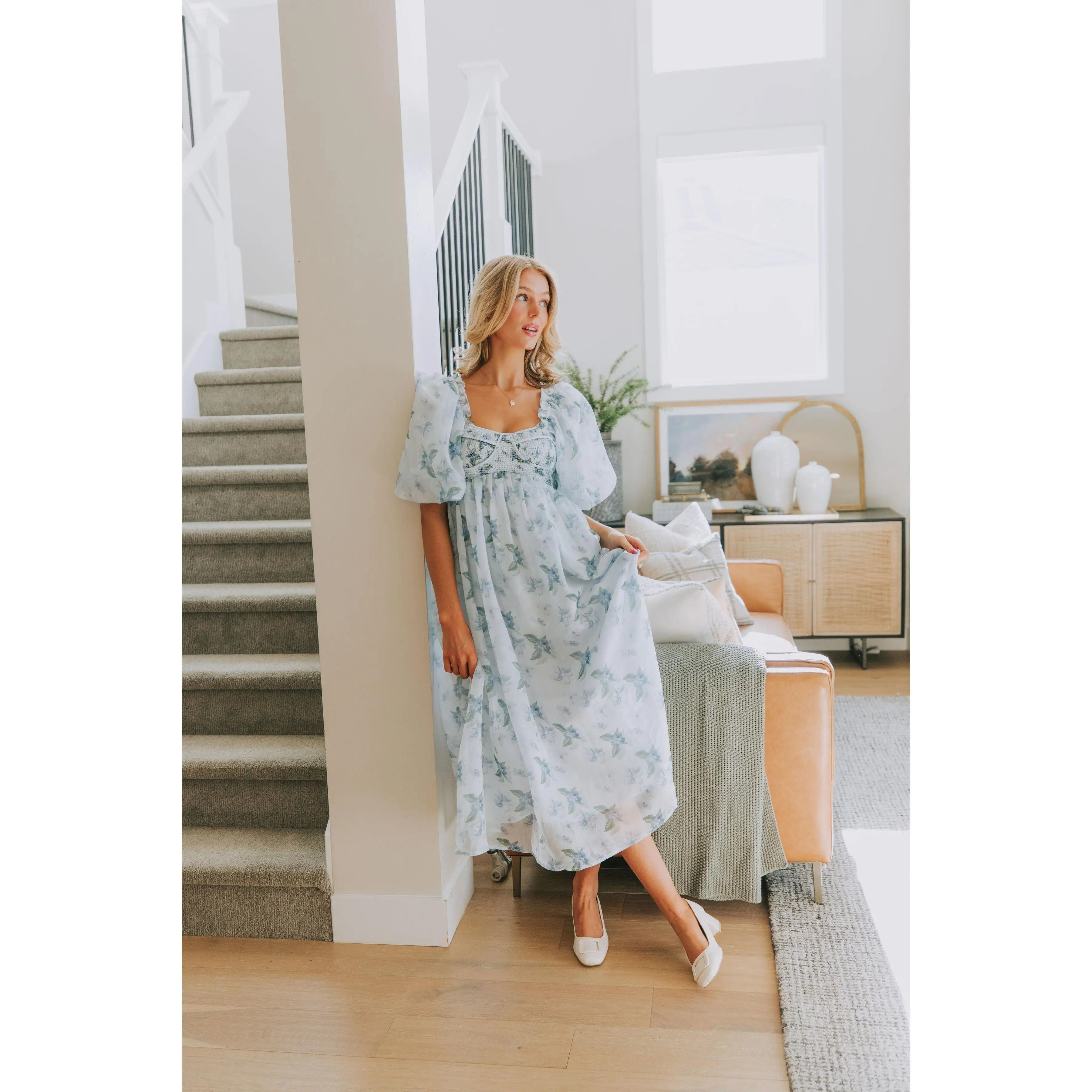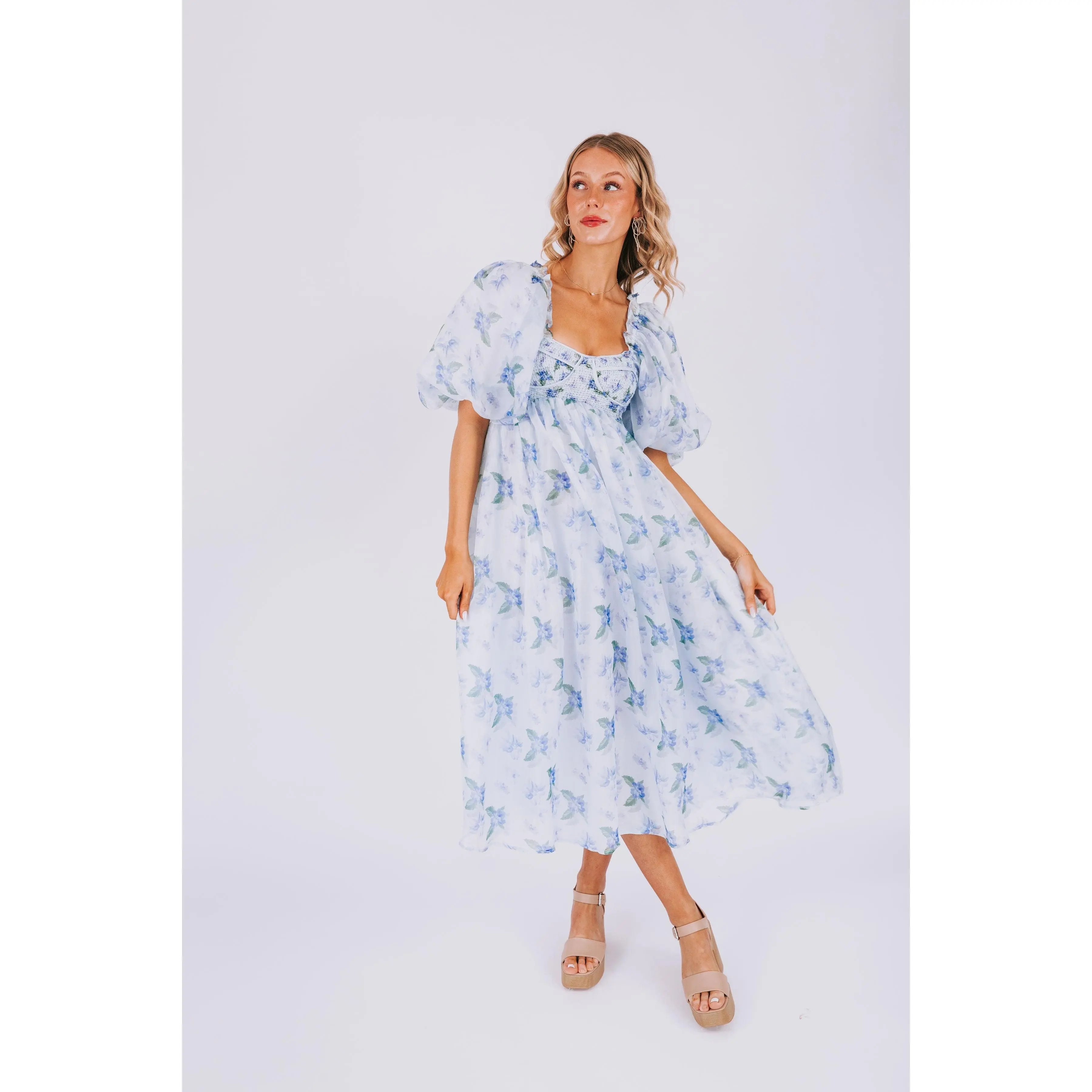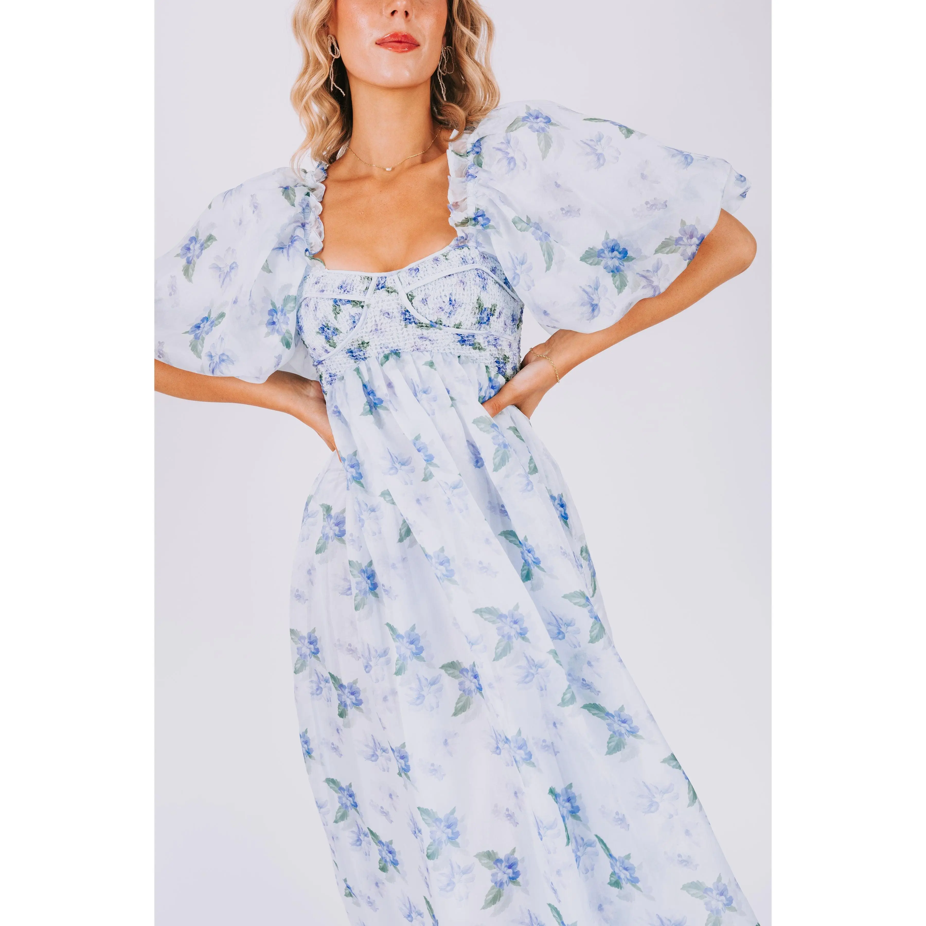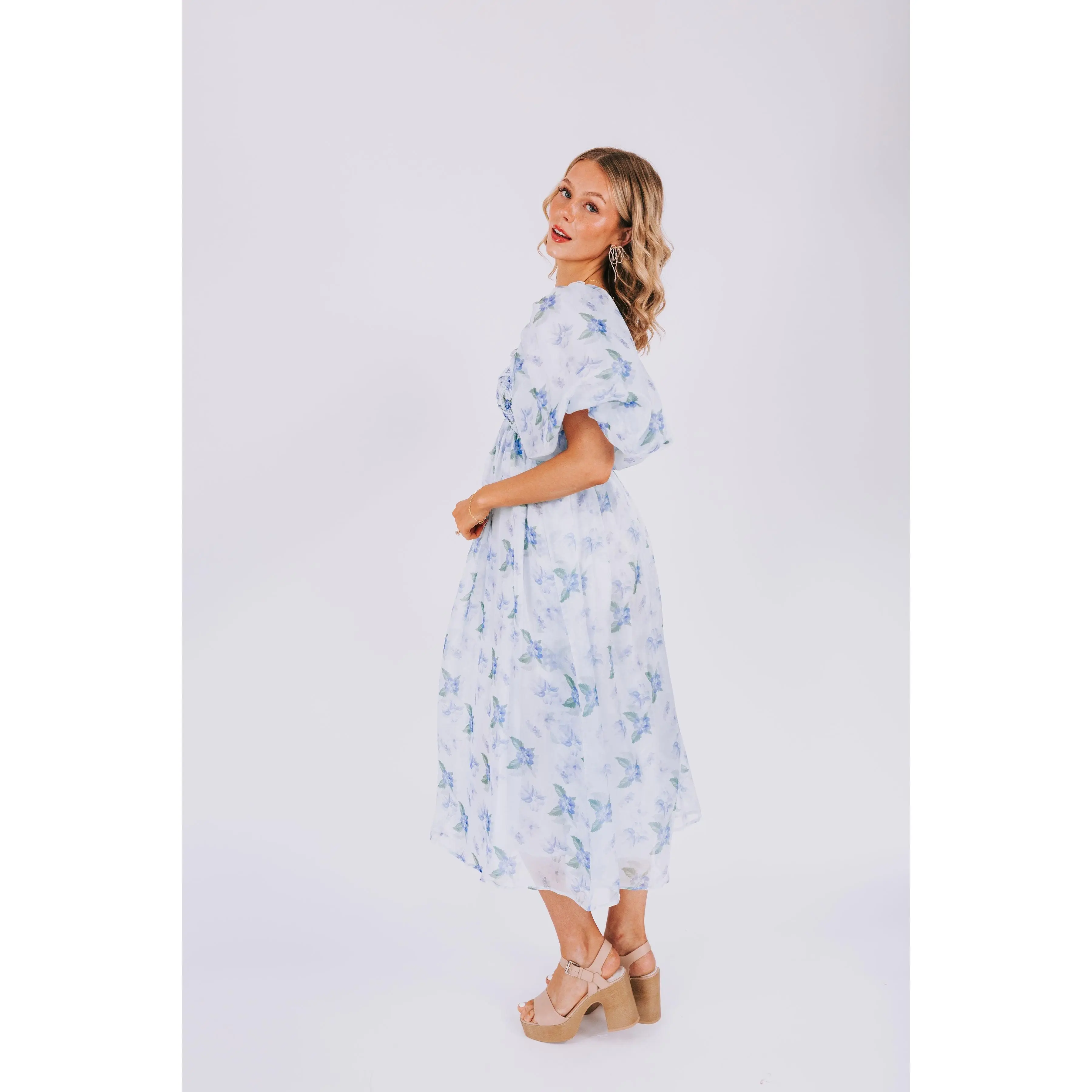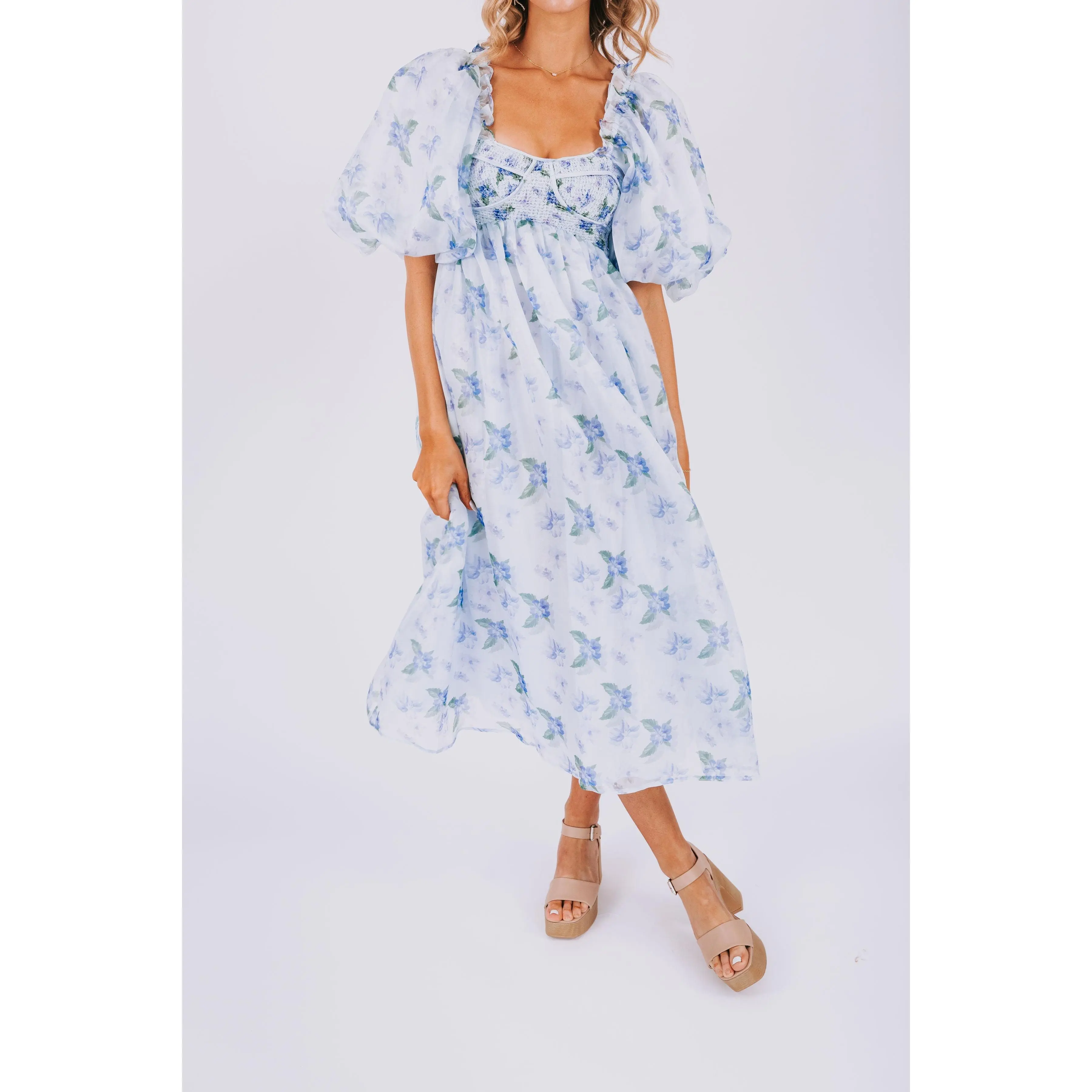 Indulge in the dreamy charm of our EXCLUSIVE Lost In A Dream Dress. Featuring a beautiful blue floral print, smocked bust, and delicate ruffle details. This midi dress is an exclusive design found only at One Loved Babe. With inclusive sizing from XS to 6XL, this dress is perfect for everyone!