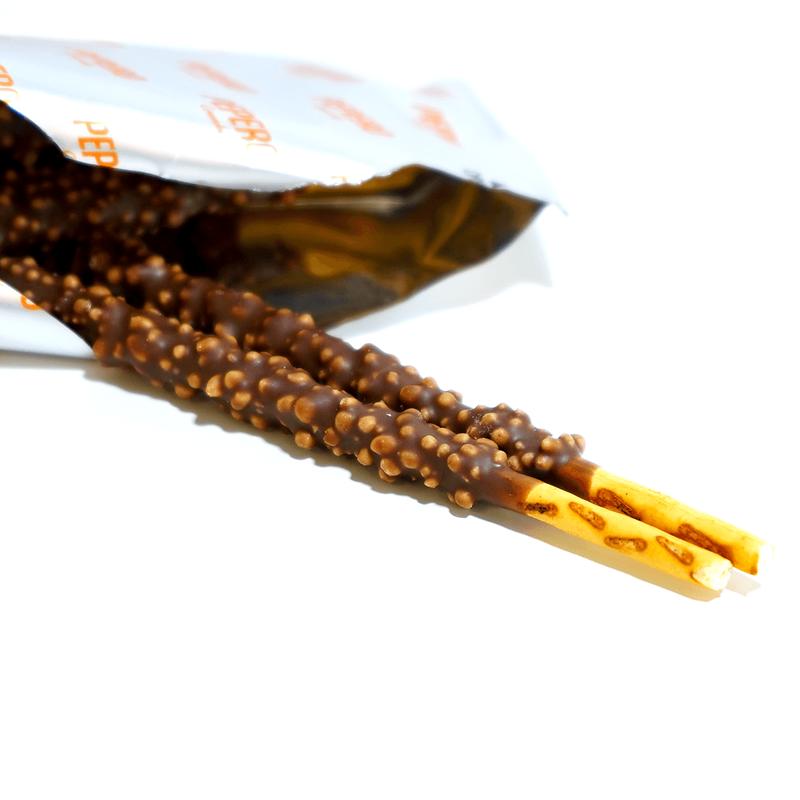 ·Thin biscuit sticks coated in rich chocolate, sprinkled with crispy rice puffs.