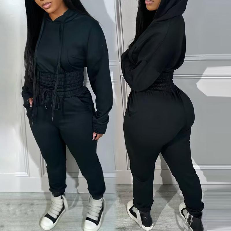 ·Design Details – Hoodie features kangaroo pocket and stretchy hem, while jogger pants come with elastic drawstring waist for flexible fit.