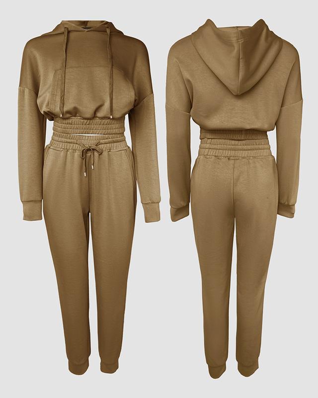 ChicMe Women's 2 Pieces Outfit Drop Shoulder Kangaroo Pocket Stretchy Hem Crop Drawstring Hoodie Sweatshirt and Drawstring Elastic Waist Jogger Sweatpants Casual Tracksuit