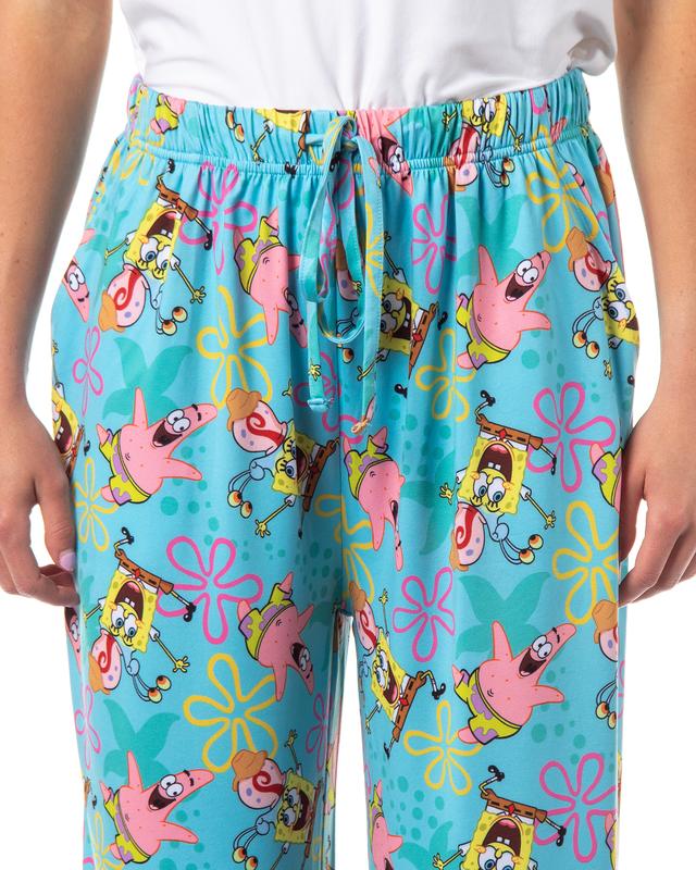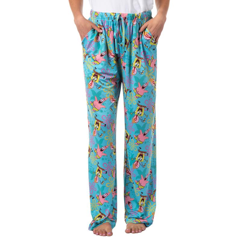 SpongeBob SquarePants is a popular cartoon series that aired on Nickelodeon. This sponge who lives in a pineapple under the sea is known for his passion for making Krabby Patties and his laughable personality. With characters like Patrick Star, Squidward, Sandy Cheeks, Plankton, Mr.Krabs, and Gary the Snail, this series is loved by fans everywhere! Now you can show off how much of a fan you are with these pajama pants! These SpongeBob SquarePants pajama pants feature the characters known as SpongeBob, Patrick Star (SpongeBob's best friend), and Gary the Snail! They are placed against a blue tropical design in a tossed print! The pajamas are a comfy 92% polyester and 8% spandex, for a casual day or a comfortable night in! These are the best! THESE ARE LOUNGE PANTS - Intimo specializes in top-notch, sleepwear for men, women, boys, and girls. Intimo is the industry leader in pop culture products and apparel that deal with the entertainment industry in comic books, tv shows, movies, music, sports, and what's trending. SIZING / SOFT FABRIC BLEND - These sleep pants are made of a super-soft 93% polyester and 7% spandex blend. They are listed in women's sizing. For visual reference our model is 5 feet 6 inches tall and is wearing a size M. For best fit please follow our sizing chart in the listing. CLASSIC CHARACTER DESIGN - SpongeBob SquarePants is a popular cartoon series that aired on Nickelodeon. This sponge who lives in a pineapple under the sea is known for his passion for making Krabby Patties and his laughable personality. With characters like Patrick Star, Squidward, Sandy Cheeks, Plankton, Mr.Krabs, and Gary the Snail, this series is loved by fans everywhere! Now you can show off how much of a fan you are with these pajama pants! These SpongeBob SquarePants pajama pants feature the characters known as SpongeBob, Patrick Star (SpongeBob's best friend), and Gary the Snail! They are placed against a blue tropical design in a tossed print! THESE LET YOU LOUNGE AROUND IN COMFORT WITH GREAT FEATURES - You will feel the difference in quality when you slip a pair of these on! These pajama pants have 2 full hand depth side pockets and a drawstring closure at the elastic-stretch waistband for a snug fit at the waistline! GIFT FOR ANY OCCASION - Magnificent design for everyday use. These pajama bottoms are designed with true fans in mind. It makes a great gift for Birthdays, Christmas, Valentine's Day, Easter, Father's Day, Mother's Day, or any other special occasion! In fact, it makes a gift for YOURSELF, because you might be the biggest fan of all.