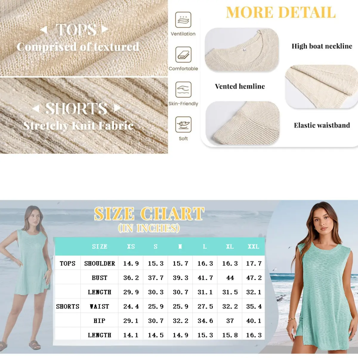 so cute! the shirts were a bit tight at the waist so i ordered another in a medium! looks so cute with the shorts it comes with and jean shorts too!