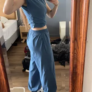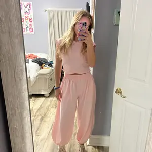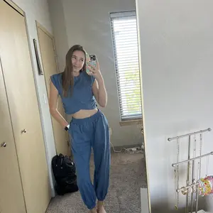 The top is very cute. The pants are HUGE! And not to mention very long. Look nothing like the model wearing them.