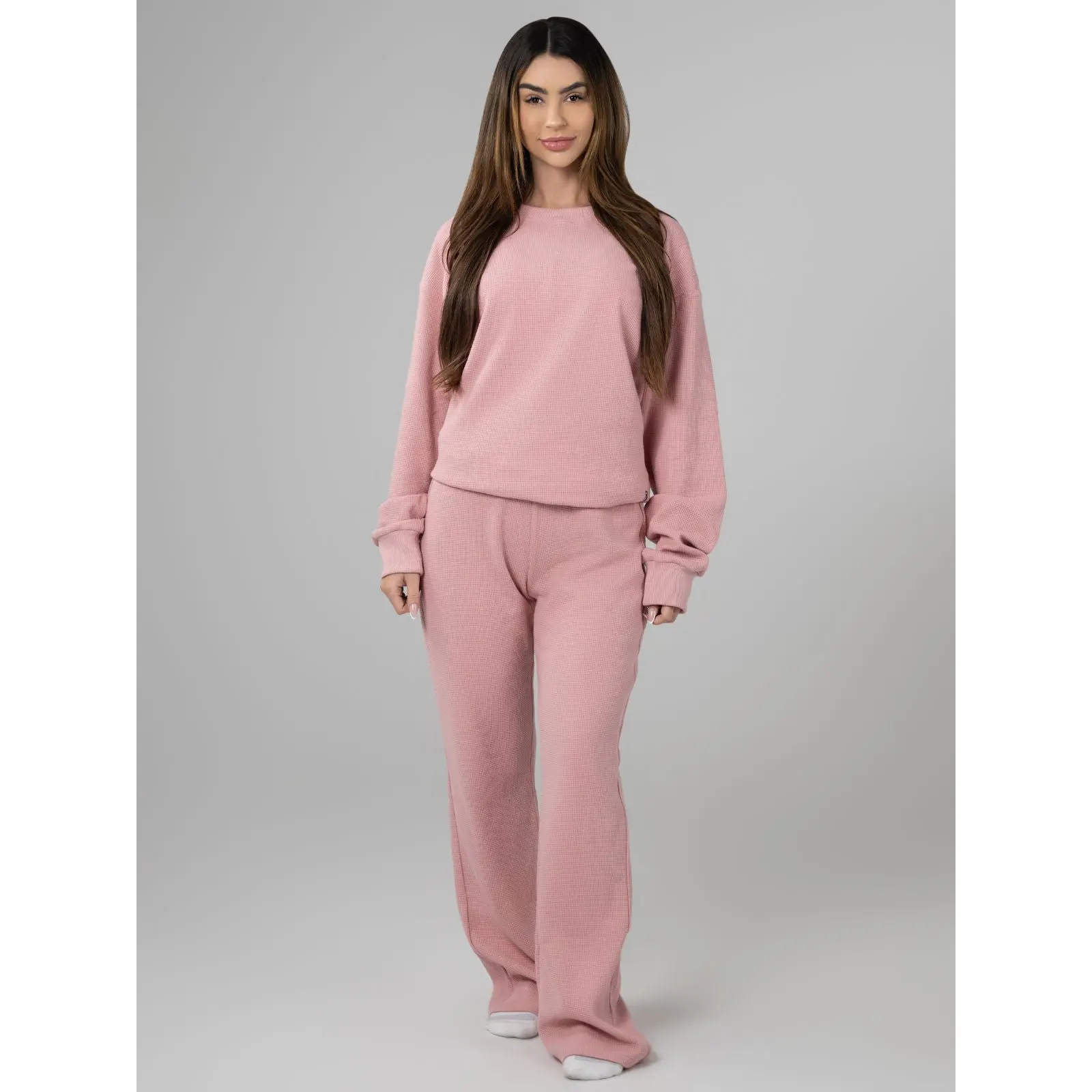 My absolute favorite loungewear and pajama set! These are just the right thickness for me and the waffle know make me feel nice and warm. I've got so many comfrt lounge items...and ill probably keep getting more!