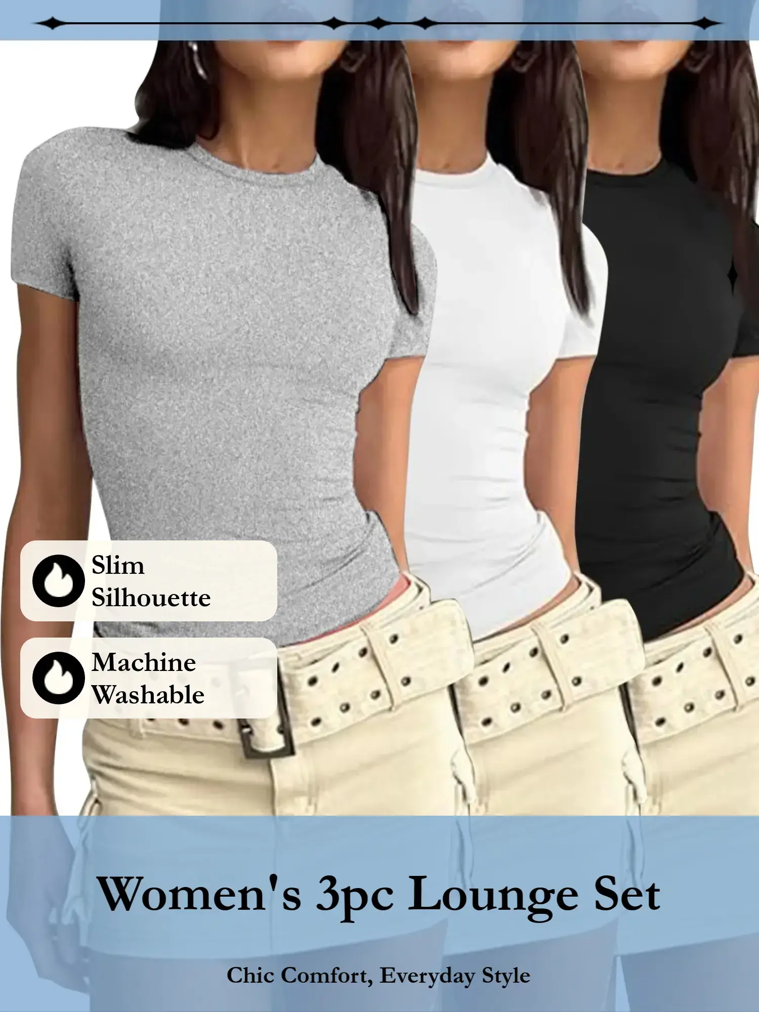 I love this grey two-piece set! The material is soft and comfy, and it fits really nicely without feeling too tight. Itâs easy to dress up with some cute shoes and accessories, but also perfect for just running errands or lounging.